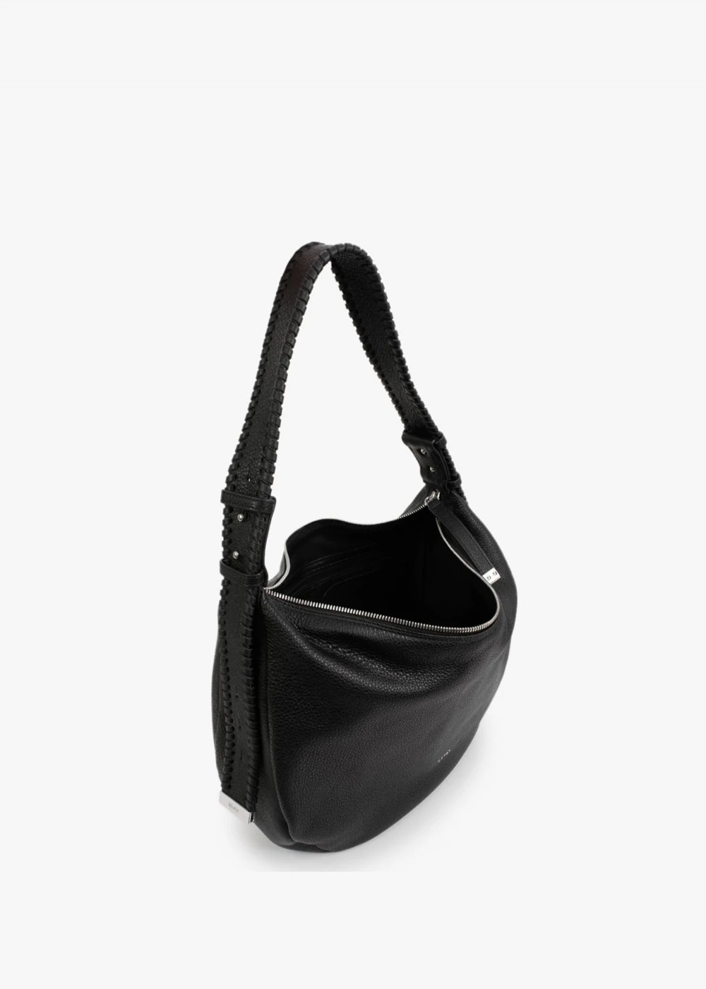 This New Season Hobo style bag from Abro is the perfect everyday style. Crafted from premium pebbled leather with polished silver tone hardware. The secure top zip fastening reveals the spacious main compartment with handy inner pockets. Carry on the shoulder by the adjustable strap or by hand. Whipstitching adds detail. Signature Abro branding is seen throughout.