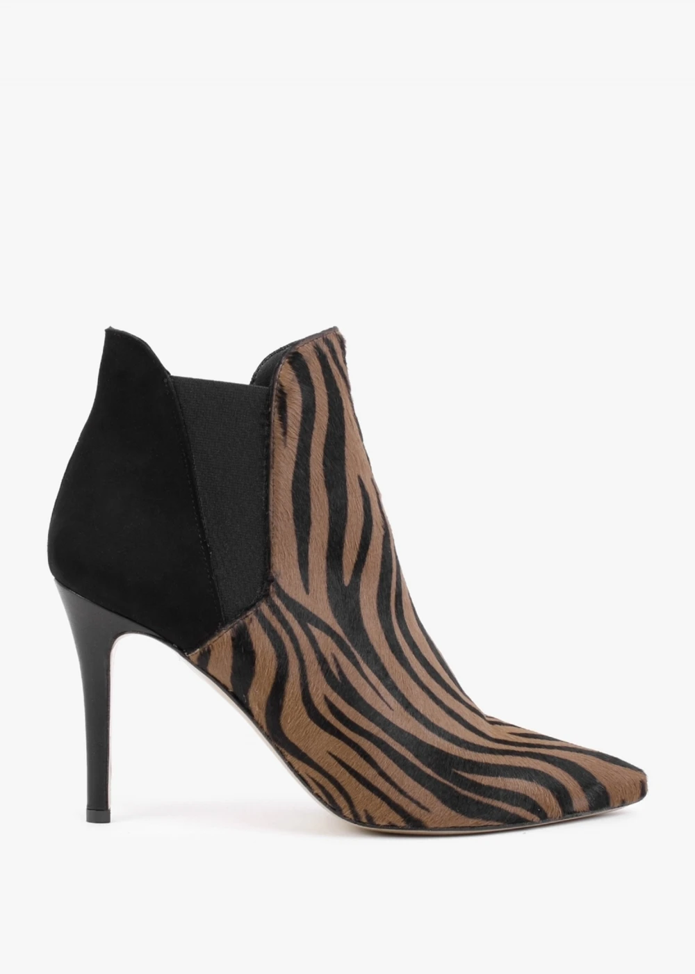 Be the first to review “Adril Black & Tan Zebra Print Calf Hair Ankle Boots” Cancel reply