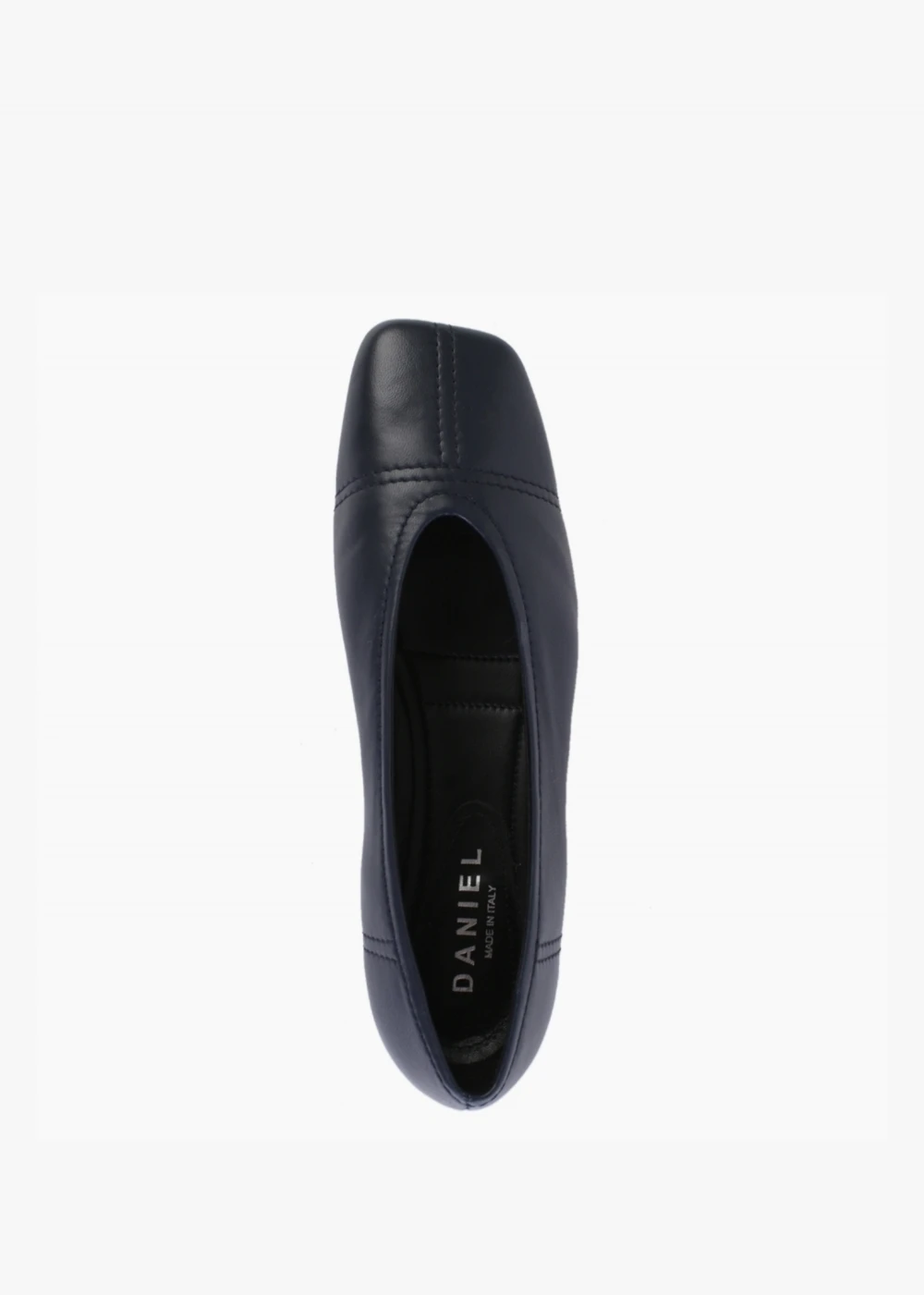 Ditch your heels and fashion the ‘Angled’ ballerina pumps from Daniel Footwear. These stylish everyday flats are crafted from a premium soft leather upper with luxurious leather lining and a man-made sole. An easy to wear slip on style. The square toe and flat sole make up the silhouette. Tonal top stitching adds detail to the upper. Signature Daniel branding is seen to the foot-bed.
