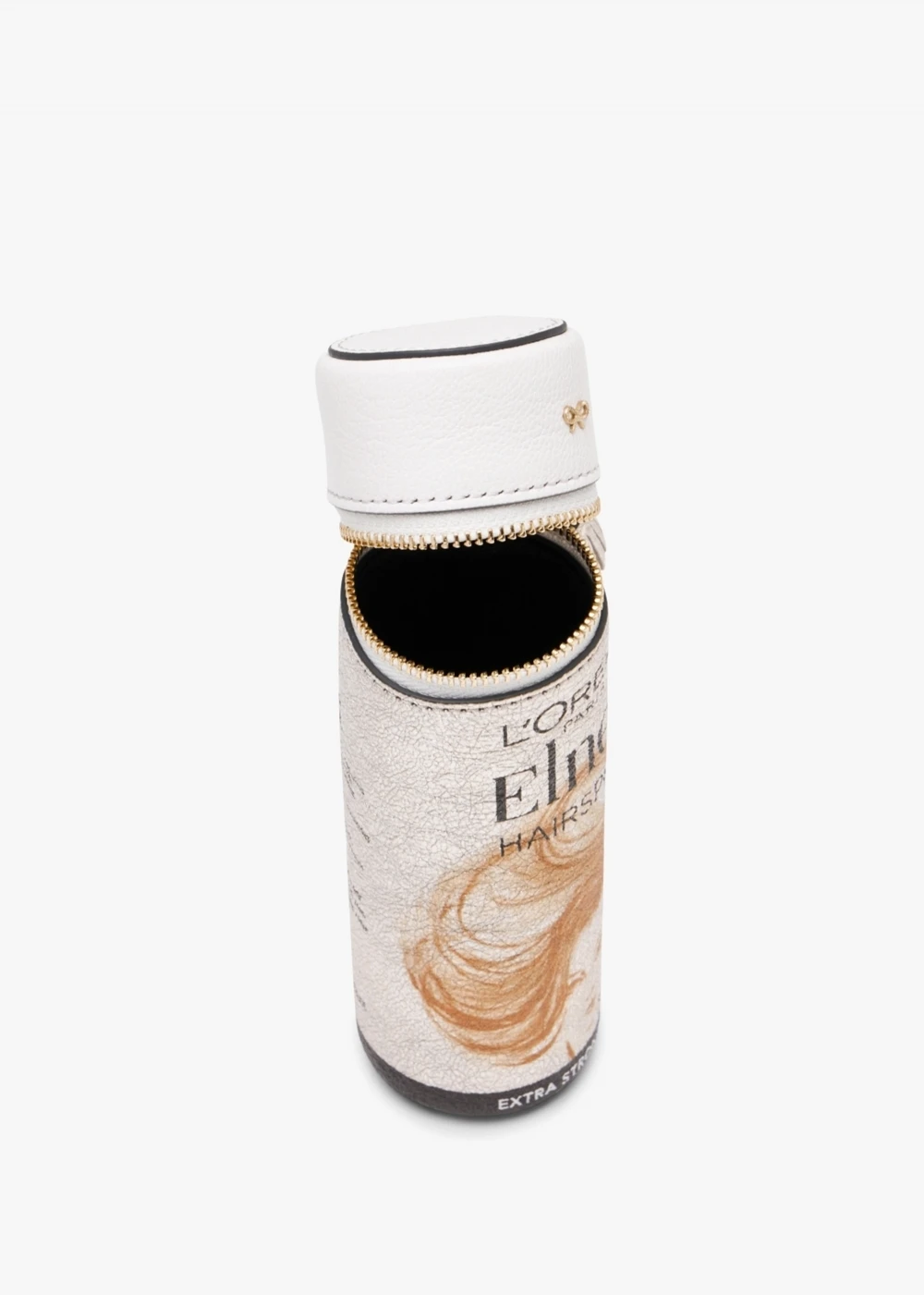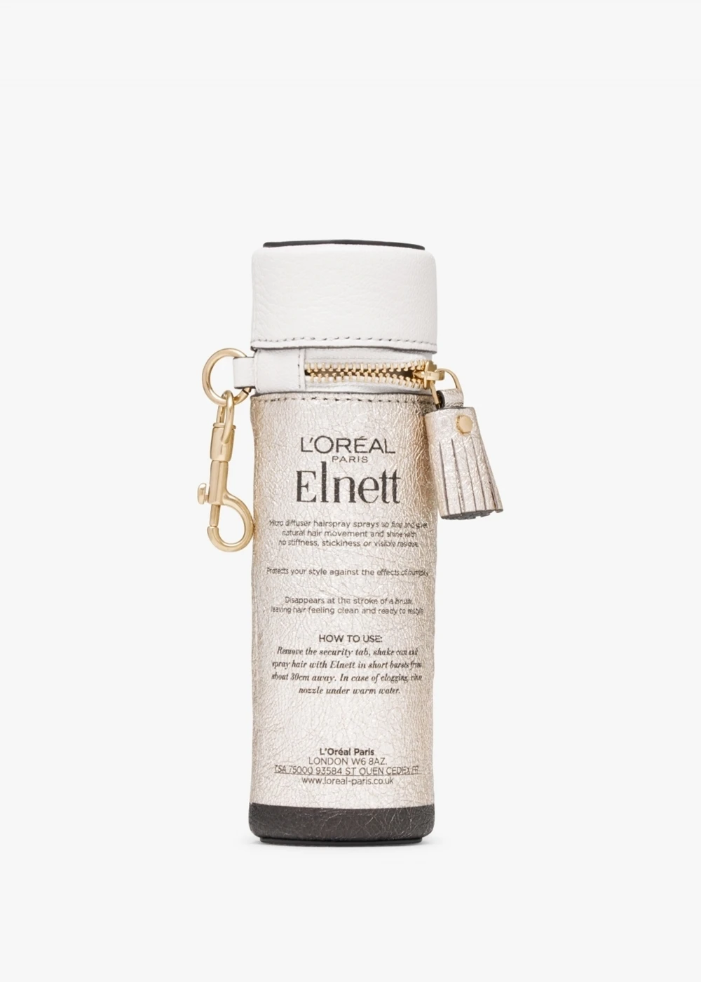 Add the playful ‘Anya Brands Elnett’ coin purse from Anya Hindmarch to your accessories collection. This whimsy style is crafted from premium crinkled shiny capra leather with gold tone accents. The secure zip around fastening with classic tassel zip pull reveals the coin compartment. Attach to your favourite bag by the lobster clasp. Iconic ‘Bow’ motif adds detail as well as signature Anya Hindmarch branding seen throughout.