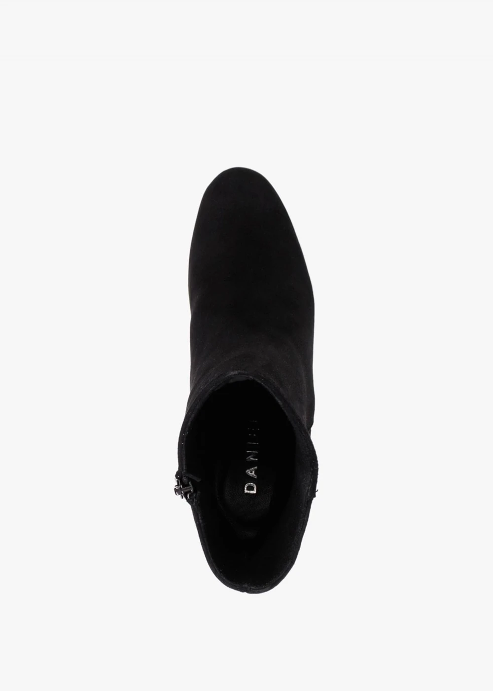 The ‘Aplatte’ platform ankle boots are part of the New Season collection from Daniel Footwear. This classic day to night style will see you through Season after Season. Crafted from a premium suede upper with luxurious leather lining and a sole. Zip fastening to the inner leg creates an easy wear. The classic round toe and high block heel make up the silhouette. Signature Daniel branding is seen to the foot-bed.