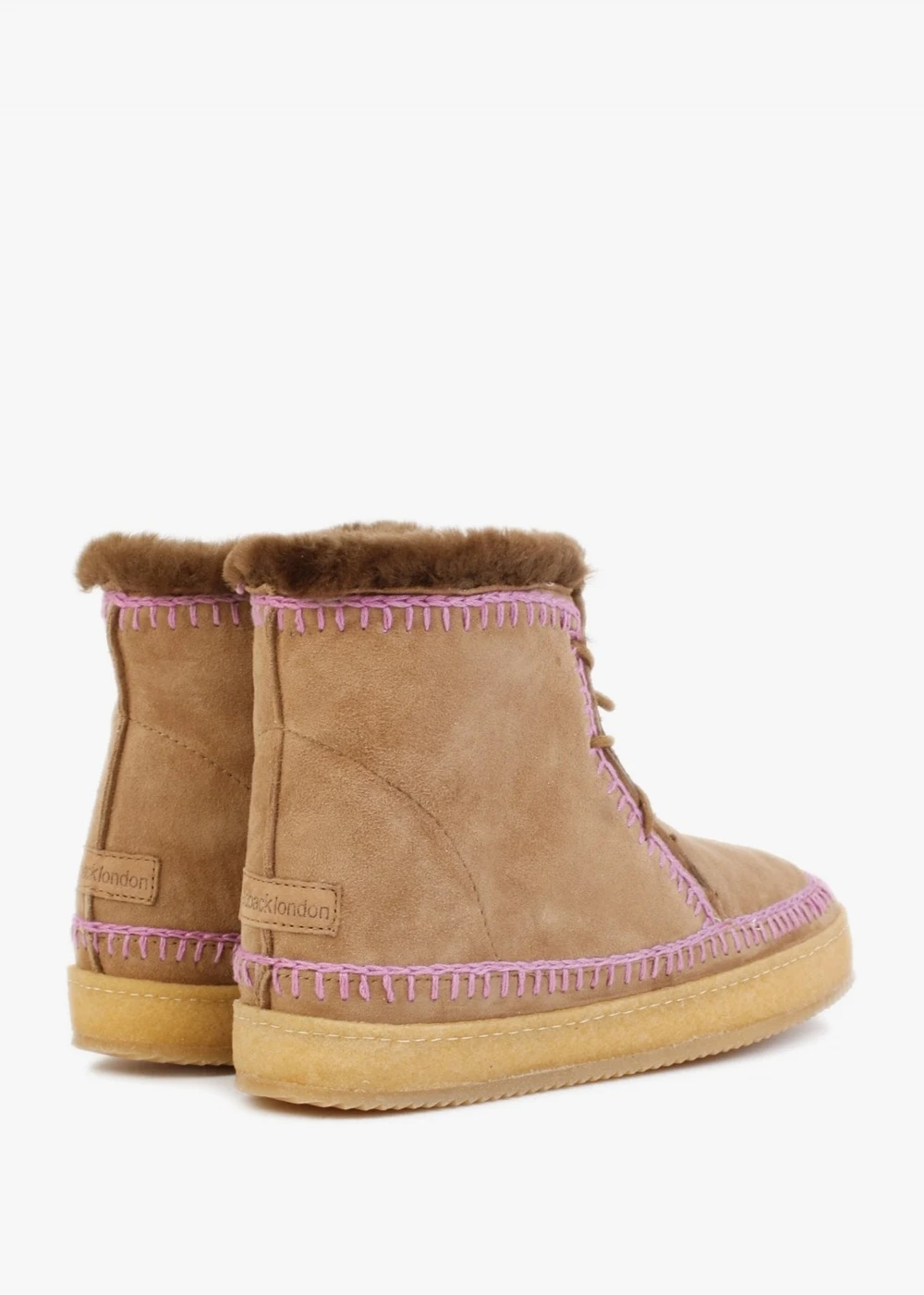 Add the ‘Argo’ ankle boots from Laidbacklondon to your Winter boot collection. This New Season style is crafted from a premium suede upper with luxurious shearling lining and a comfy crepe rubber sole. The lace up upper ensures the perfect fit. Contrasting crochet trim adds detail. Signature Laidback London branding is seen to the foot-bed and back of the ankle.