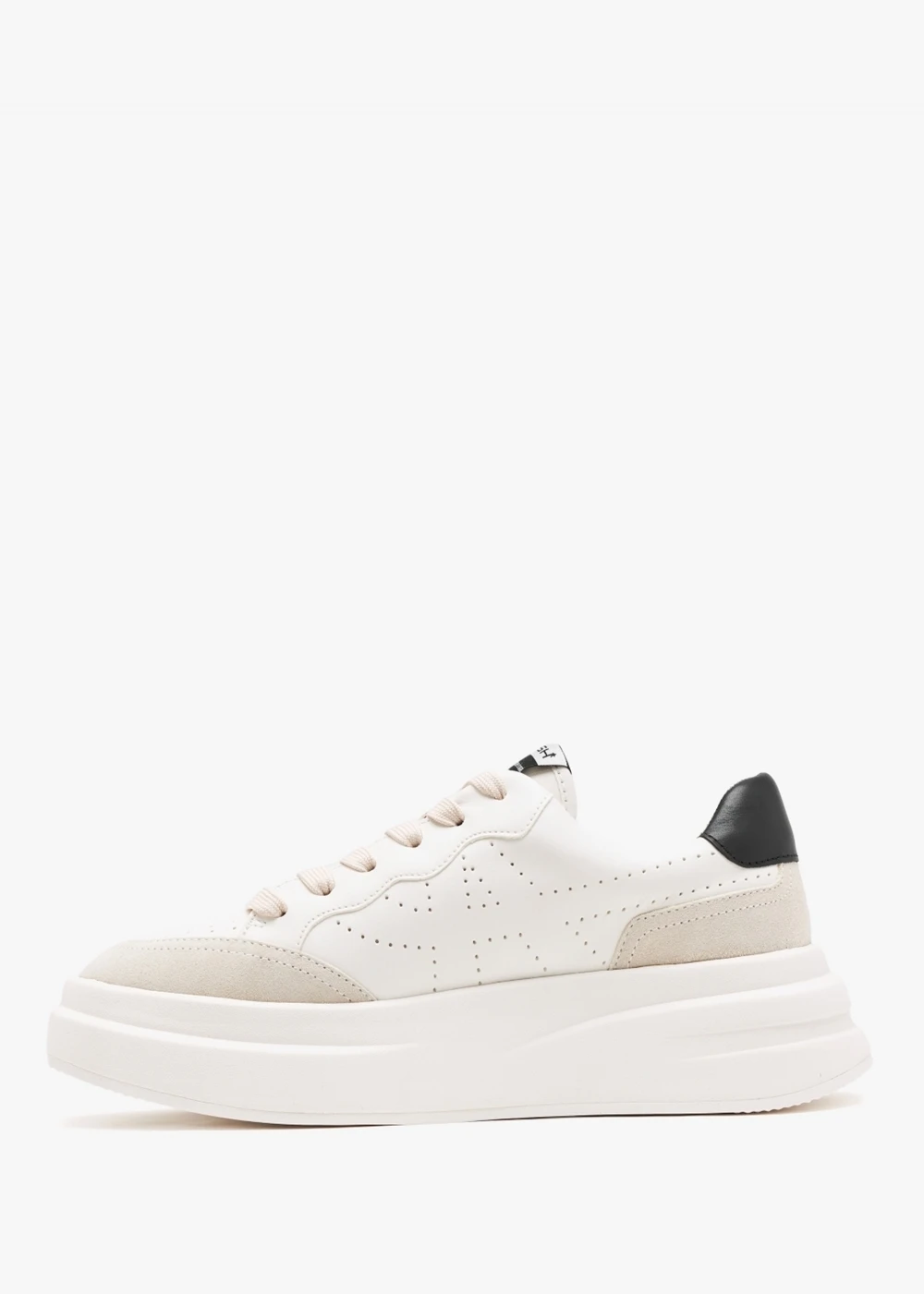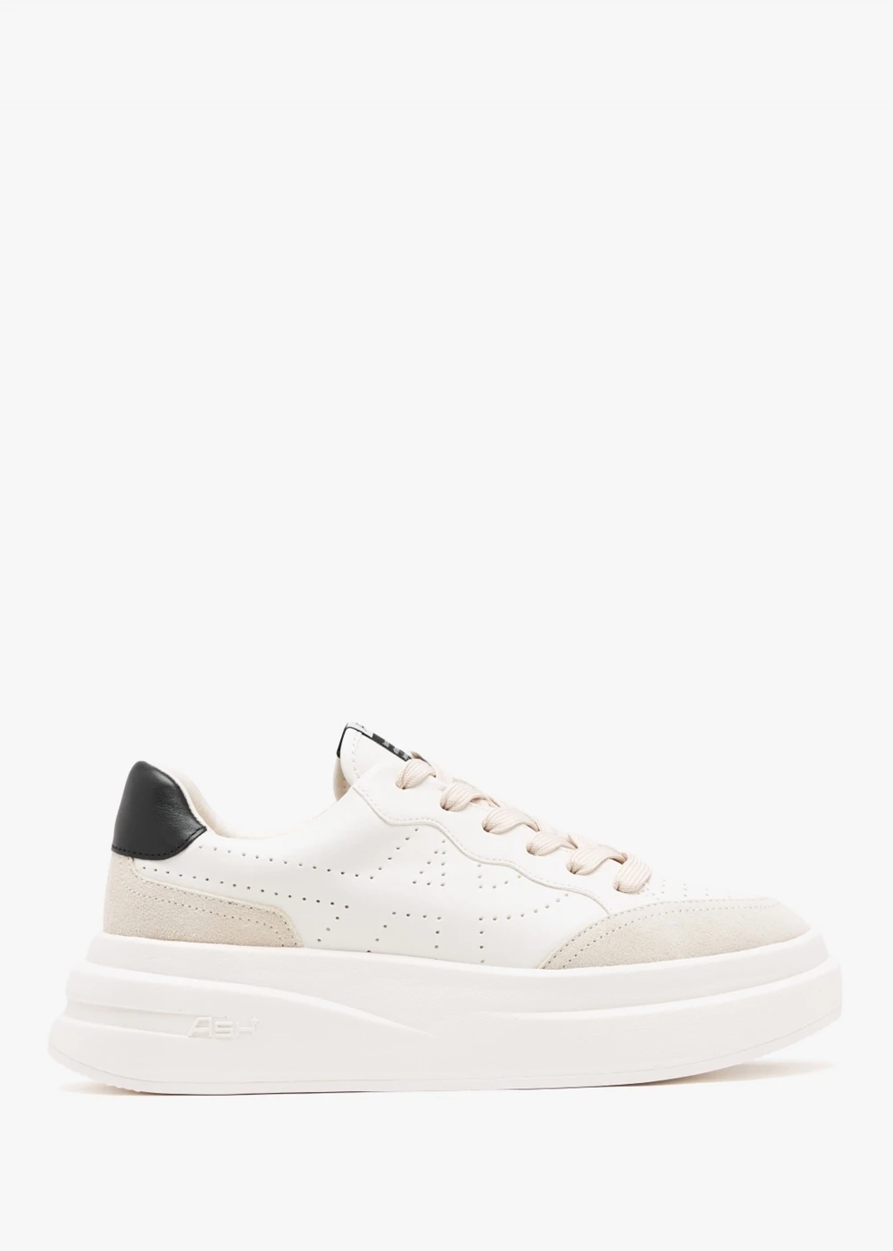 The ‘Impuls Eco’ trainers are part of the New Season RE/ASH sustainable collection. Crafted from recycled chrome-free leather and suede with a chunky rubber flatform sole. Contrasting monochrome inserts add detail as well as perforation. Signature Ash branding is seen throughout.