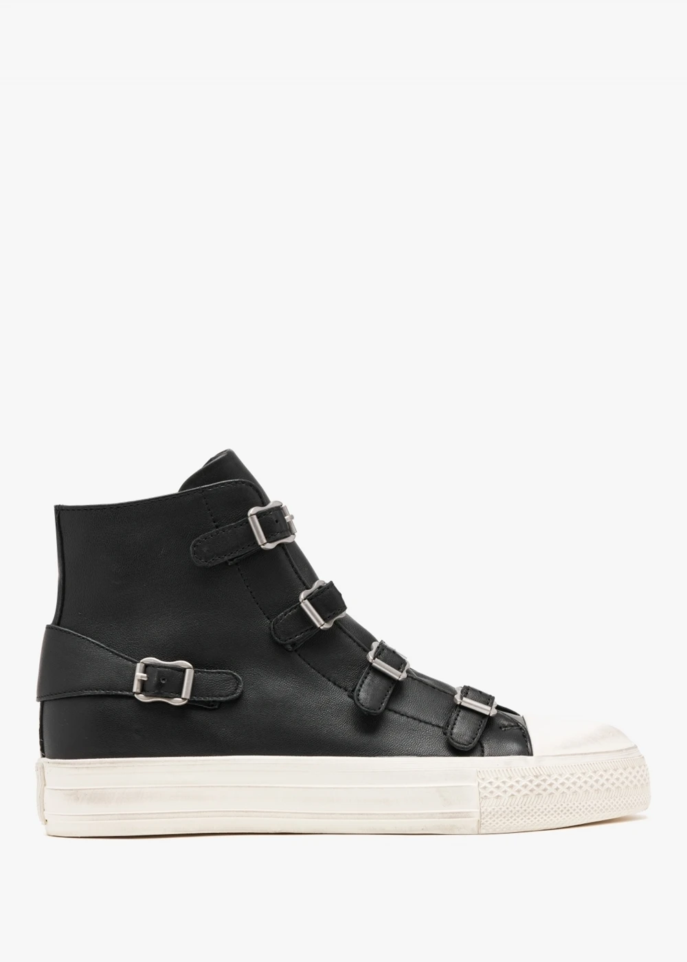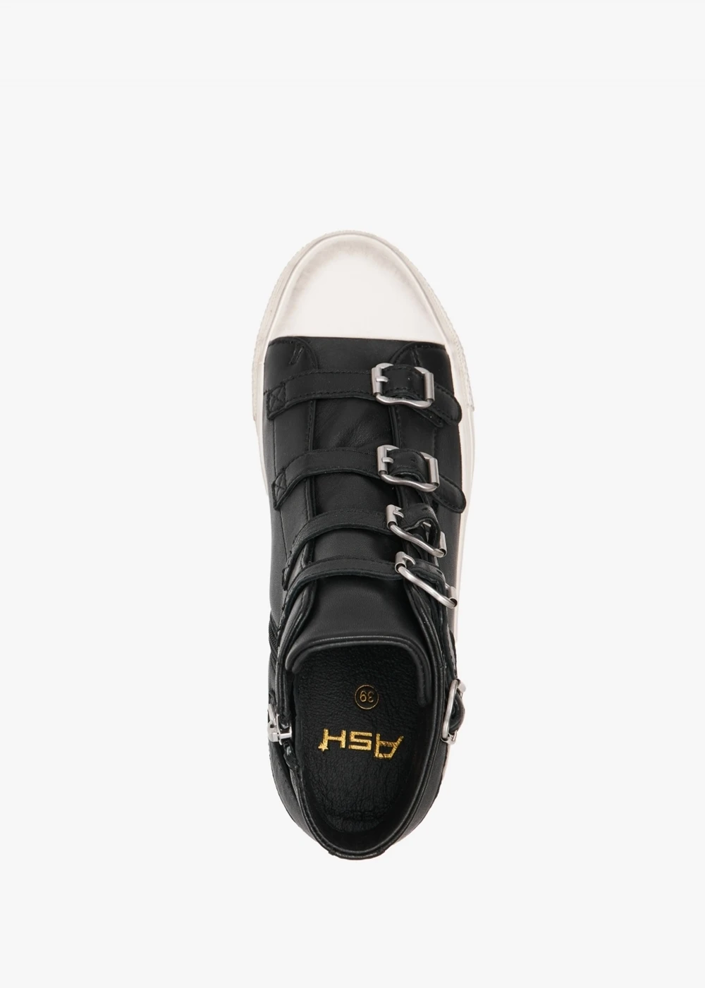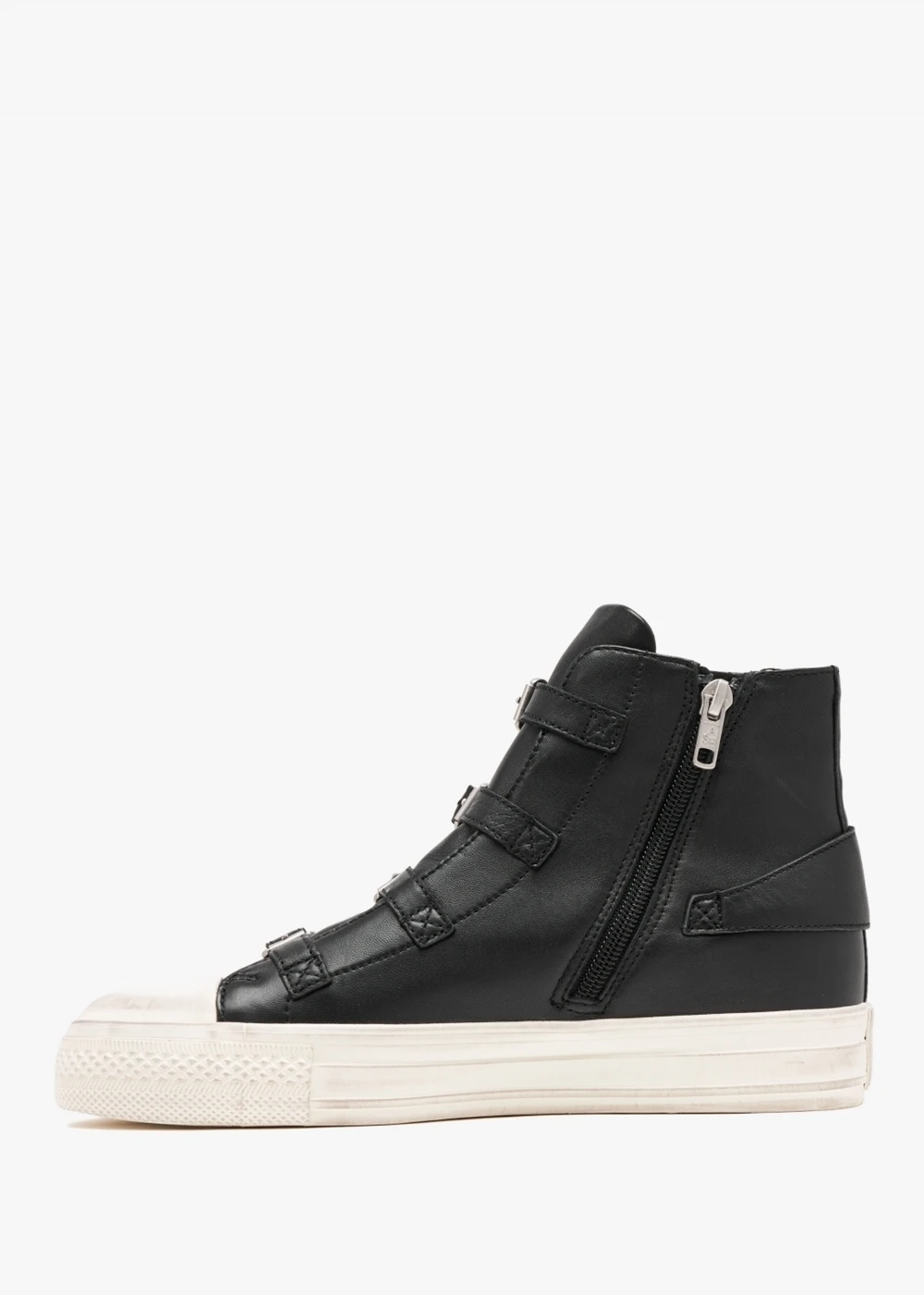 The classic ‘Virgin’ high top trainers are back at Daniel Footwear for yet another Season. This best-selling style is crafted from a premium leather upper with textile lining and for this New Season a distressed plain rubber sole. Zip fastening to the inner leg creates an easy wear and the buckle fastening strap to the upper ensures the perfect fit. Signature Ash branding is seen throughout.