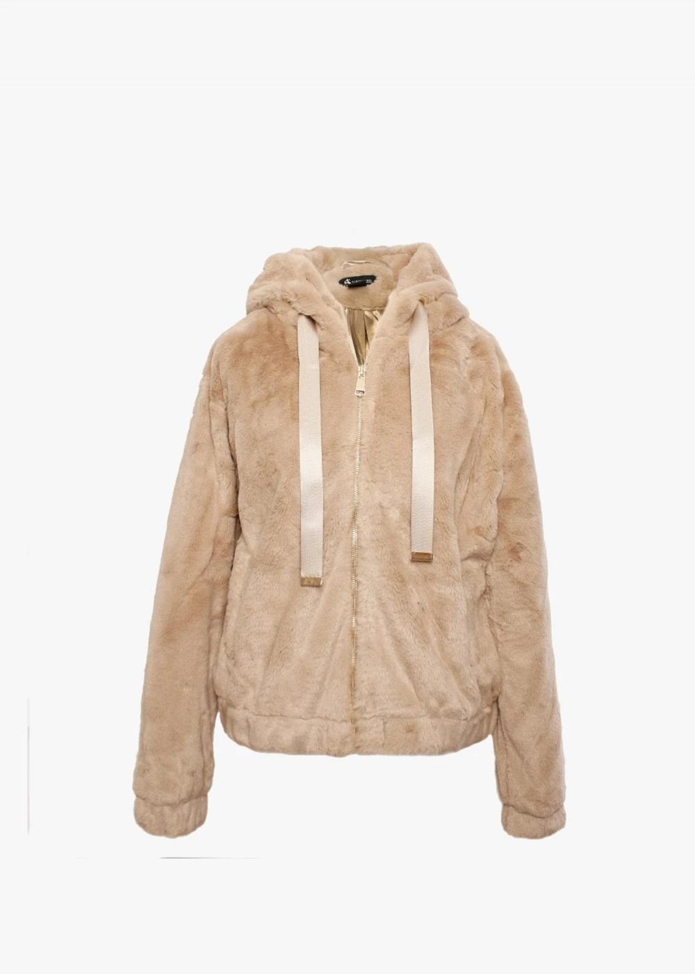 Add this bomber style jacket from Alison Sheri to your Winter wardrobe. A classic light weight style crafted from faux fur. The centre front zip fastening creates an easy wear. Handy insert pockets feature as well as elasticated cuff and hem as well as drawstring hood. Signature Alison Sheri branding is seen to the label on the inside of the jacket.