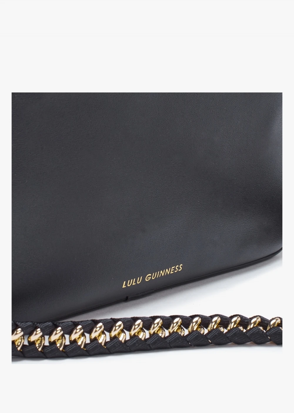 The ‘Bella’ cross-body style camera bag is part of the New Season collection from Lulu Guinness. Crafted from Bovine leather with polished gold tone hardware. The secure top zip fastening reveals the main cotton lined compartment and features handy inner slot pockets, exterior slot pocket also features. Carry by the adjustable chain and ribbon wrapped strap. Quilted ripple lips design adds detail. Signature Lulu Guinness branding is seen throughout.