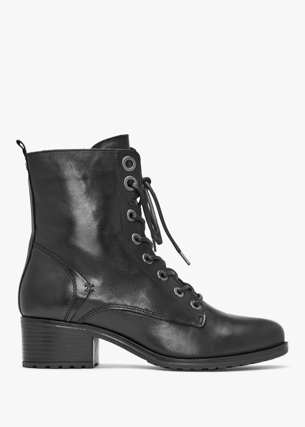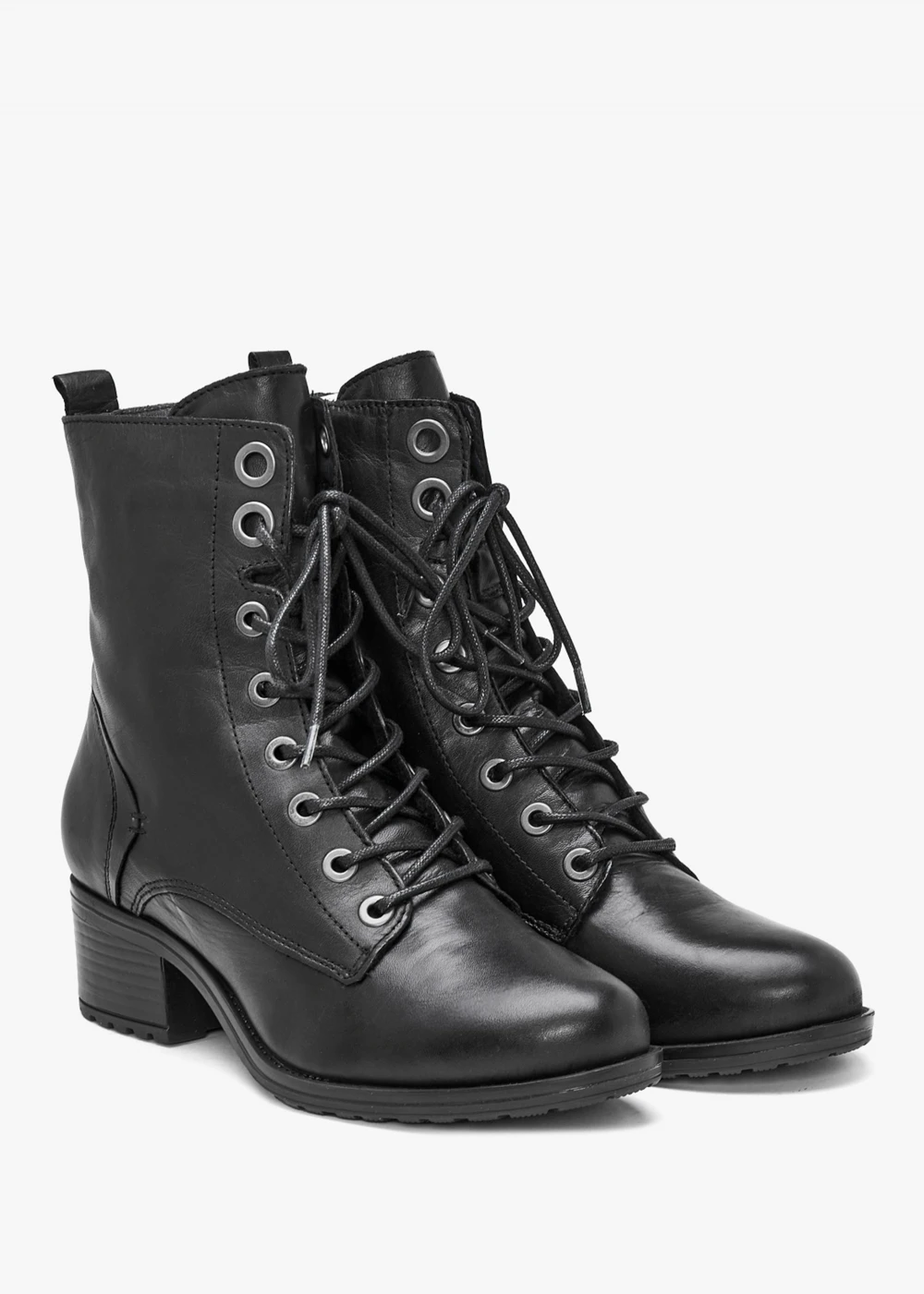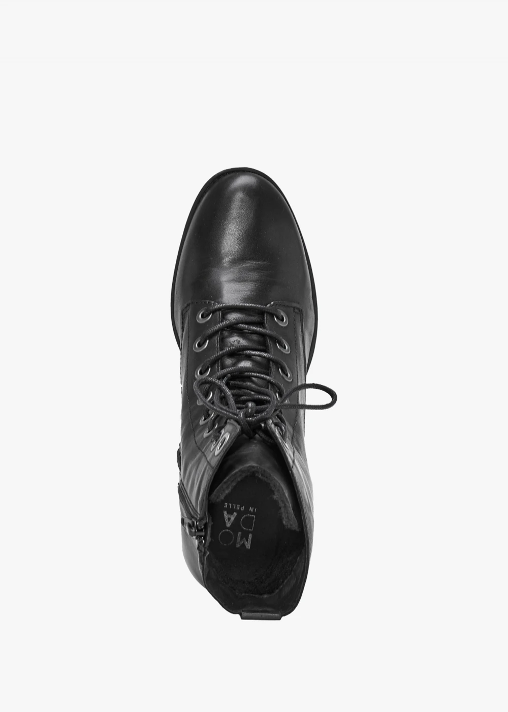The ‘Bezzie’ ankle boots are part of the New Season from Moda In Pelle. This everyday style is crafted from a premium leather upper with part leather lining and a rubber sole. The inner side zip fastening creates an easy wear and the lace up upper ensures the perfect fit. Tonal top stitching and raised seaming add detail to the upper. The classic round toe and low block heel. Signature Moda In Pelle branding is seen to the foot-bed.