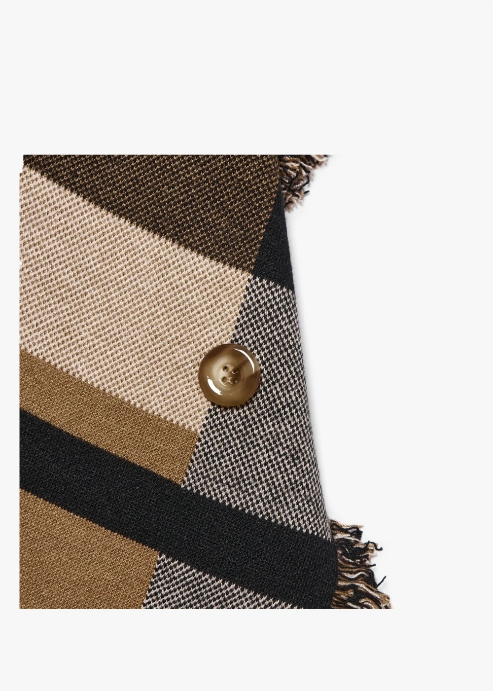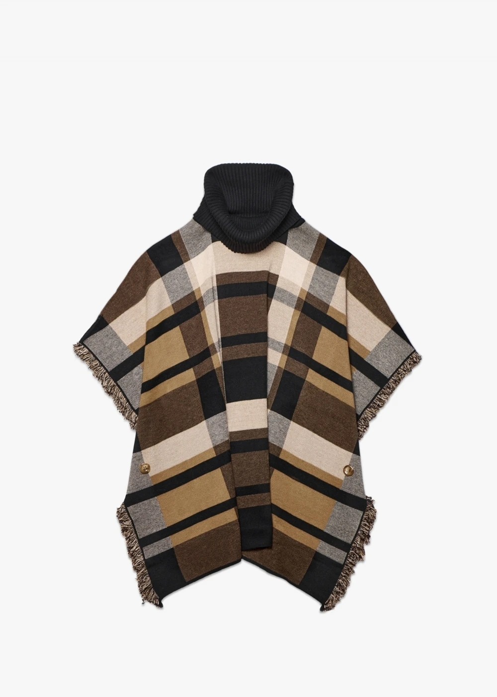 This New Season poncho from Alison Sheri is the perfect throw over. An easy to wear pull on over the head style featuring classic ribbed roll neck. This knitted style features frayed edging and button detail to the side seams. Signature Alison Sheri branded tab is stitched into the back of the neck.