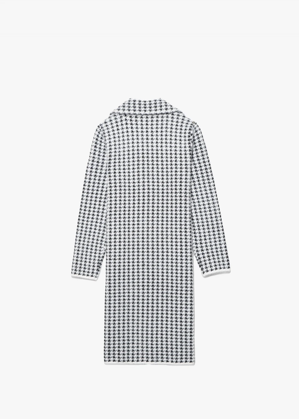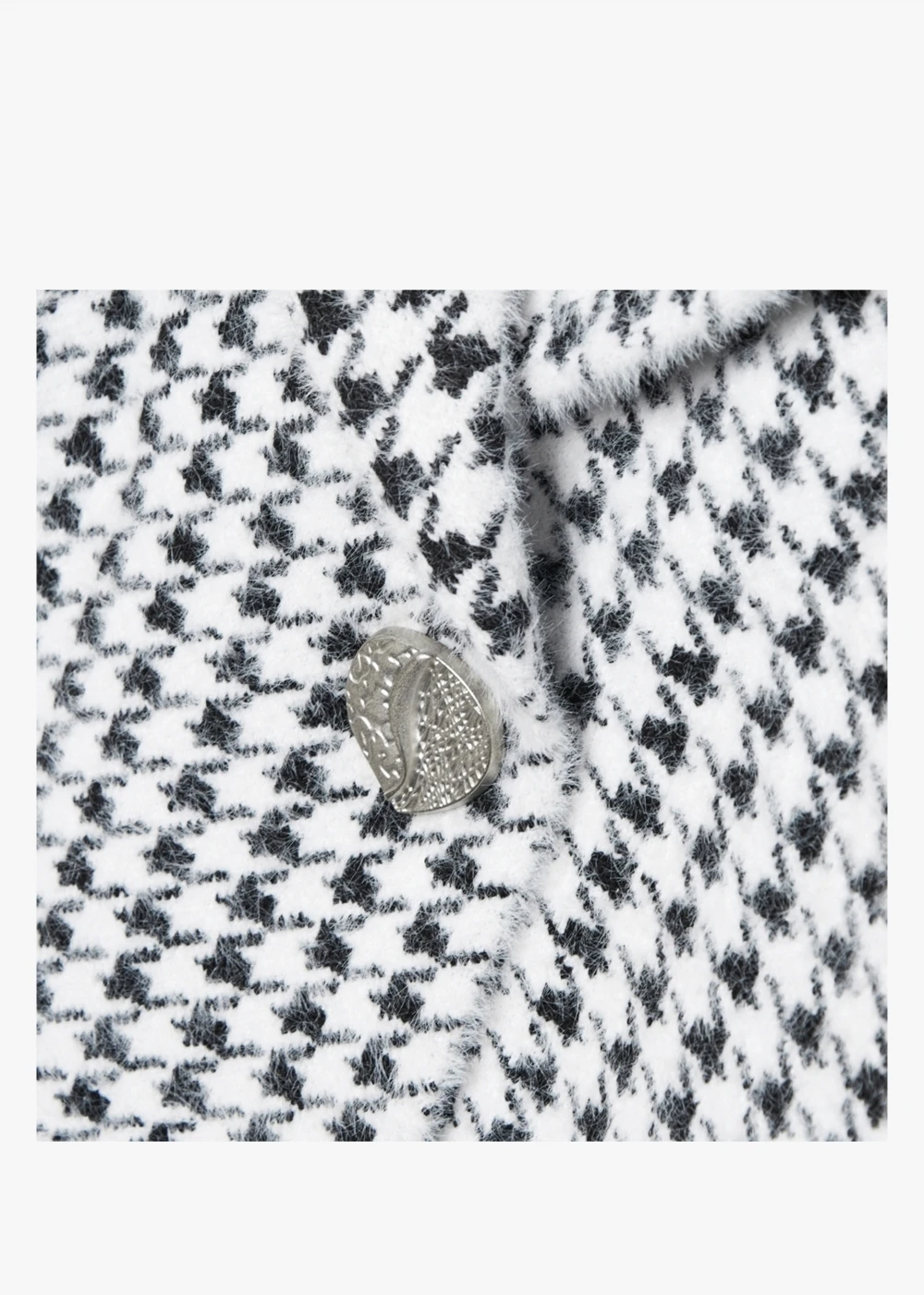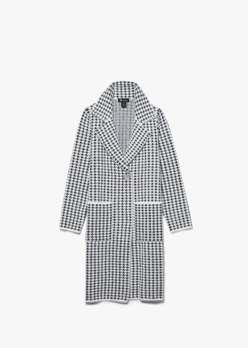Add this New Season long line coat from Alison Sheri to your Winter wardrobe. Crafted from a super soft knitted fabric in a houndstooth design. Button and popper fastening front creates an easy wear. Handy inset pockets feature. Signature Alison Sheri branding is seen to the label on the inside of the coat.