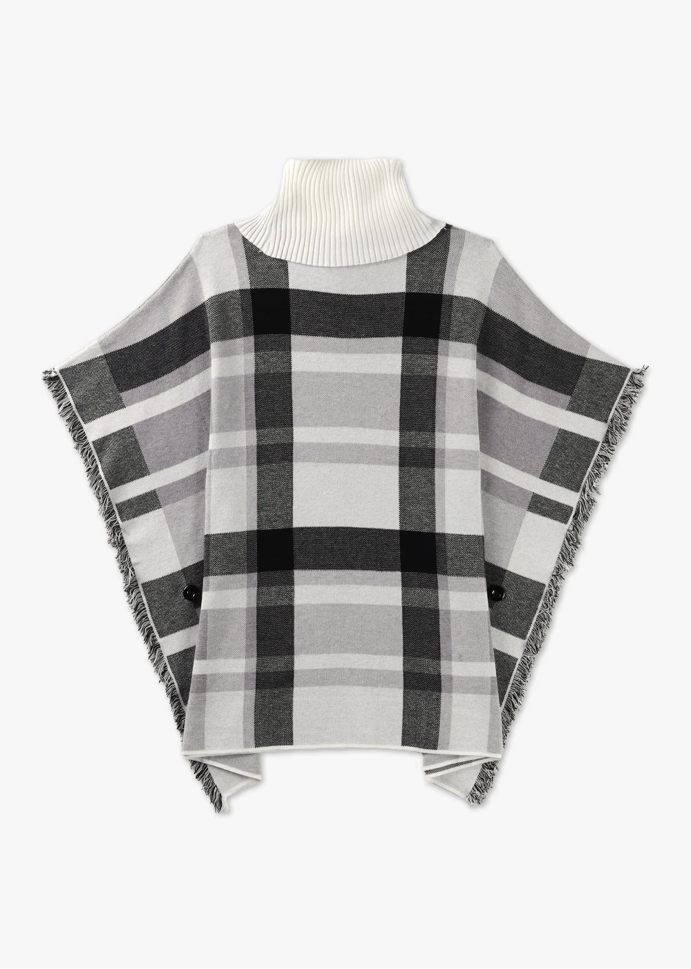 This New Season poncho from Alison Sheri is the perfect throw over. An easy to wear pull on over the head style featuring classic ribbed roll neck. This knitted style features frayed edging and button detail to the side seams. Signature Alison Sheri branded tab is stitched into the back of the neck.