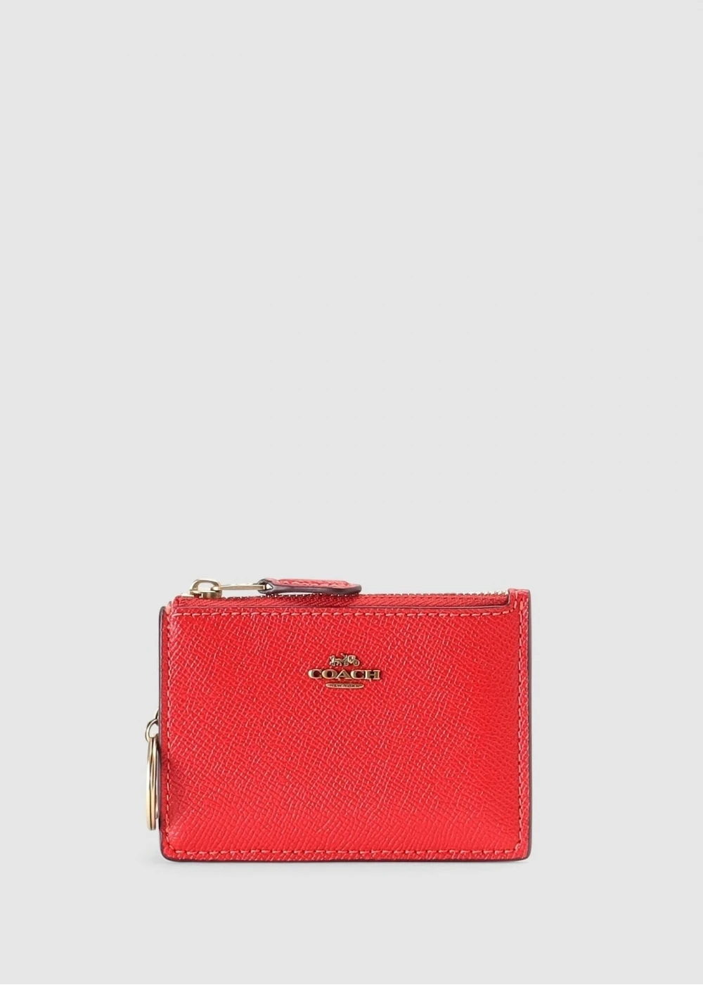 Keep all your smaller essentials secure in style this New Season with the ‘Mini Skinny ID’ case from COACH. This must have accessory is crafted from premium crossgrain leather with antique gold tone accents. The secure top zip fastening reveals a fabric lined compartment with handy inner keyring on a chain, exterior card slot pockets feature. Signature COACH branding is seen throughout.