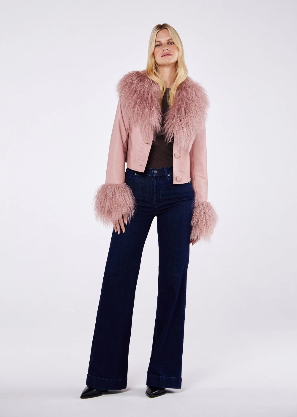 Be the first to review “Cropped Penny Dust Pink Mongolian Trim Jacket” Cancel reply