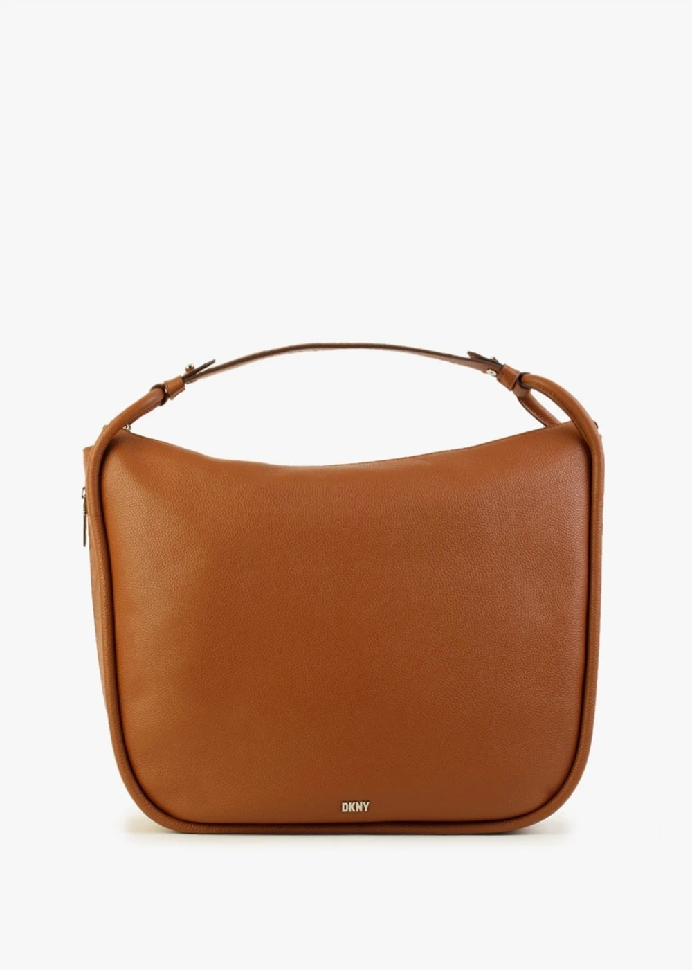 Add the large ‘Phoebe’ hobo bag from DKNY to your handbag collection. This New Season style is perfect for everyday use or weekends away. Crafted from premium pebbled leather with silver tone hardware. The secure top zip fastening reveals logo lining and handy inner compartments, exterior zip pocket also features. Carry on the shoulder. Signature DKNY branding is seen throughout.