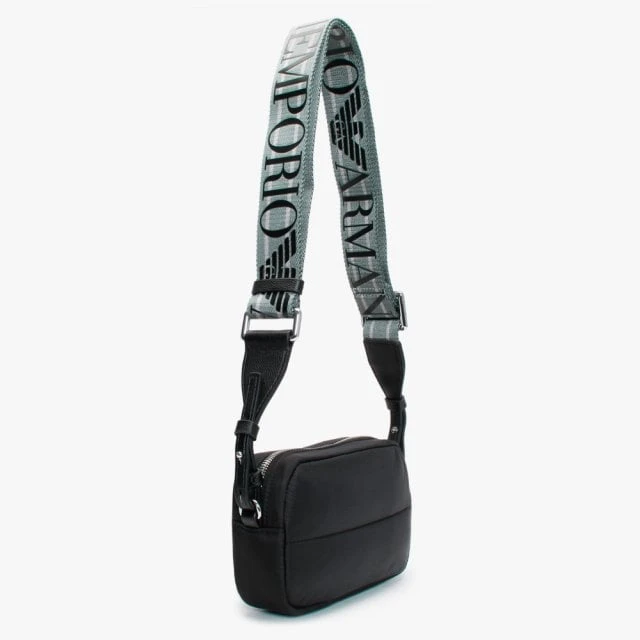 Add the ‘Lilly’ camera bag from Emporio Armani to your handbag collection. This everyday sporty style is crafted from partly recycled fibers featuring silver tone hardware. The secure top zip fastening reveals the main compartment and handy inner slot pocket. Carry by the detachable logo guitar strap. Signature Emporio Armani branding is seen throughout.