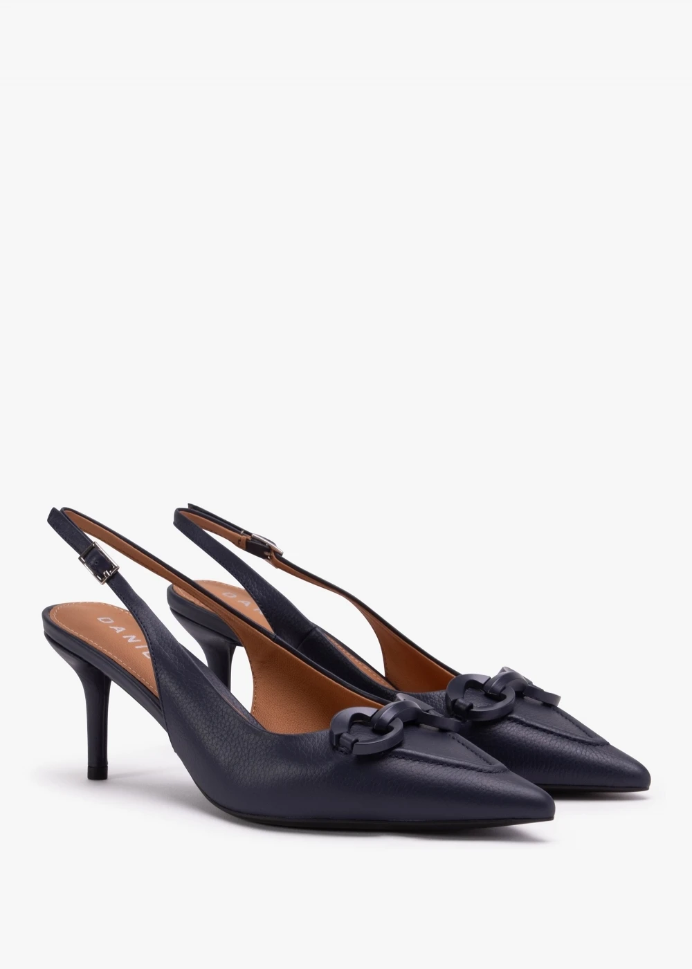 Be the first to review “Eppie Navy Leather Mid Heel Sling Back Shoes” Cancel reply