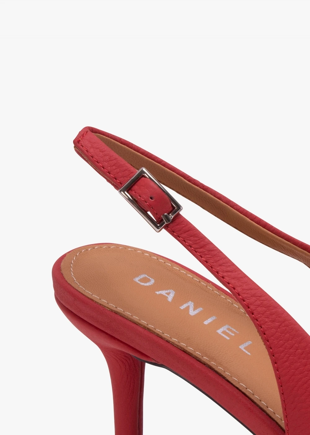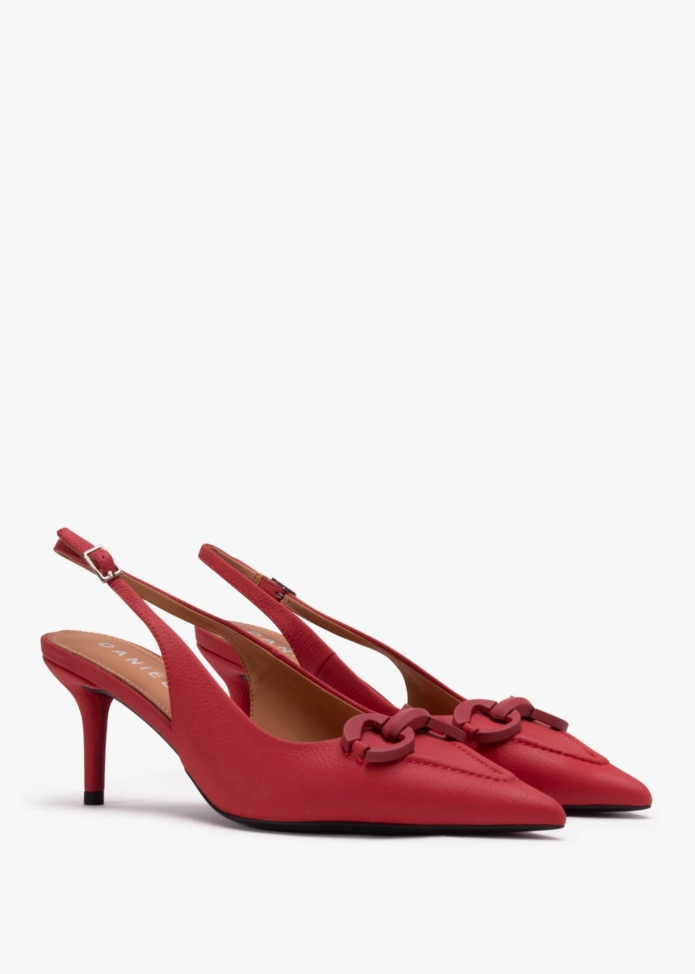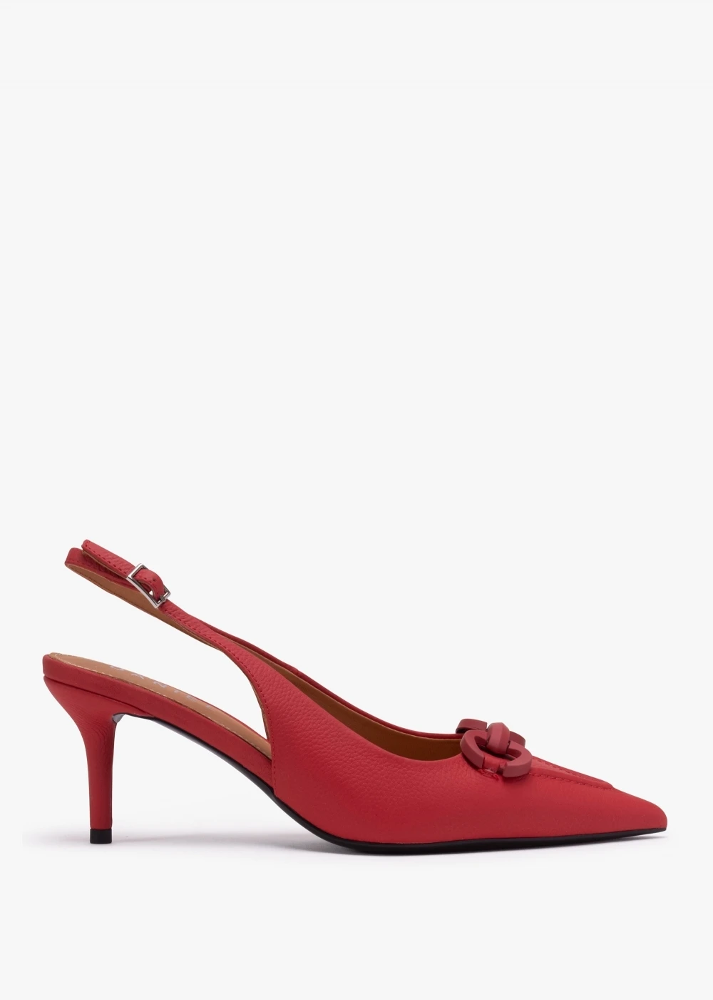 Be the first to review “Eppie Red Leather Mid Heel Sling Back Shoes” Cancel reply