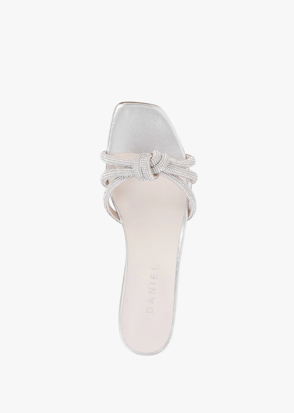 Ditch your heels this New Season and fashion the ‘Flatante’ flat mules from Daniel Footwear. This simple yet chic style is crafted from a statement diamante twisted knot upper with luxurious leather lining and a leather sole. An easy to wear slip on mule. Signature Daniel branding is seen to the foot-bed.