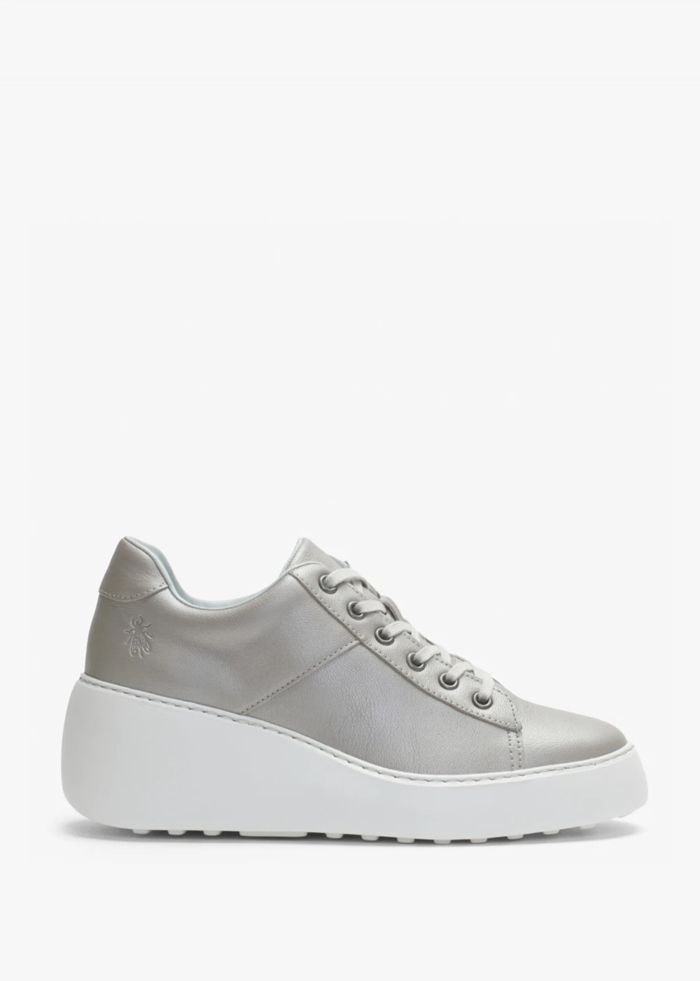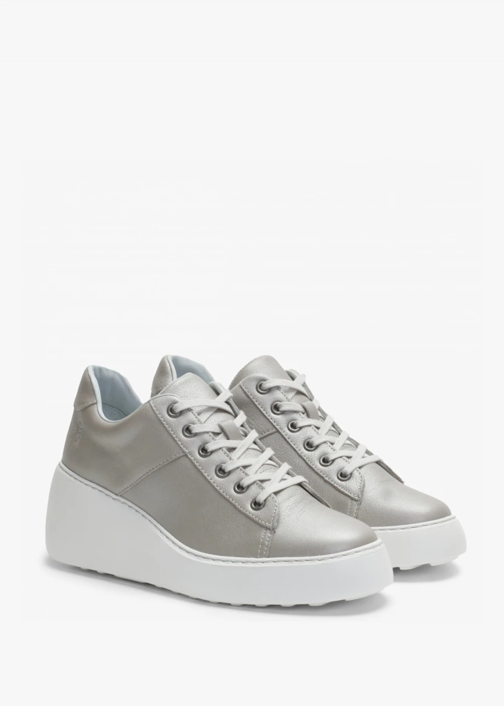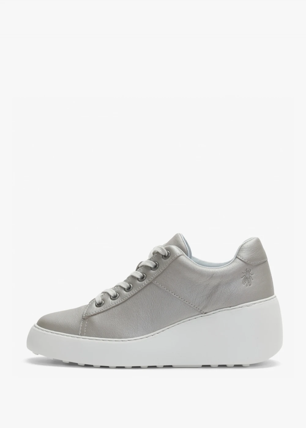 Be the first to review “Fly London Delf Silver Leather Wedge Trainers” Cancel reply