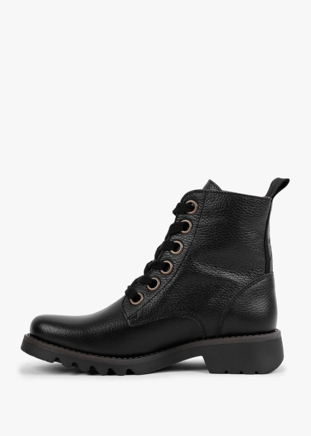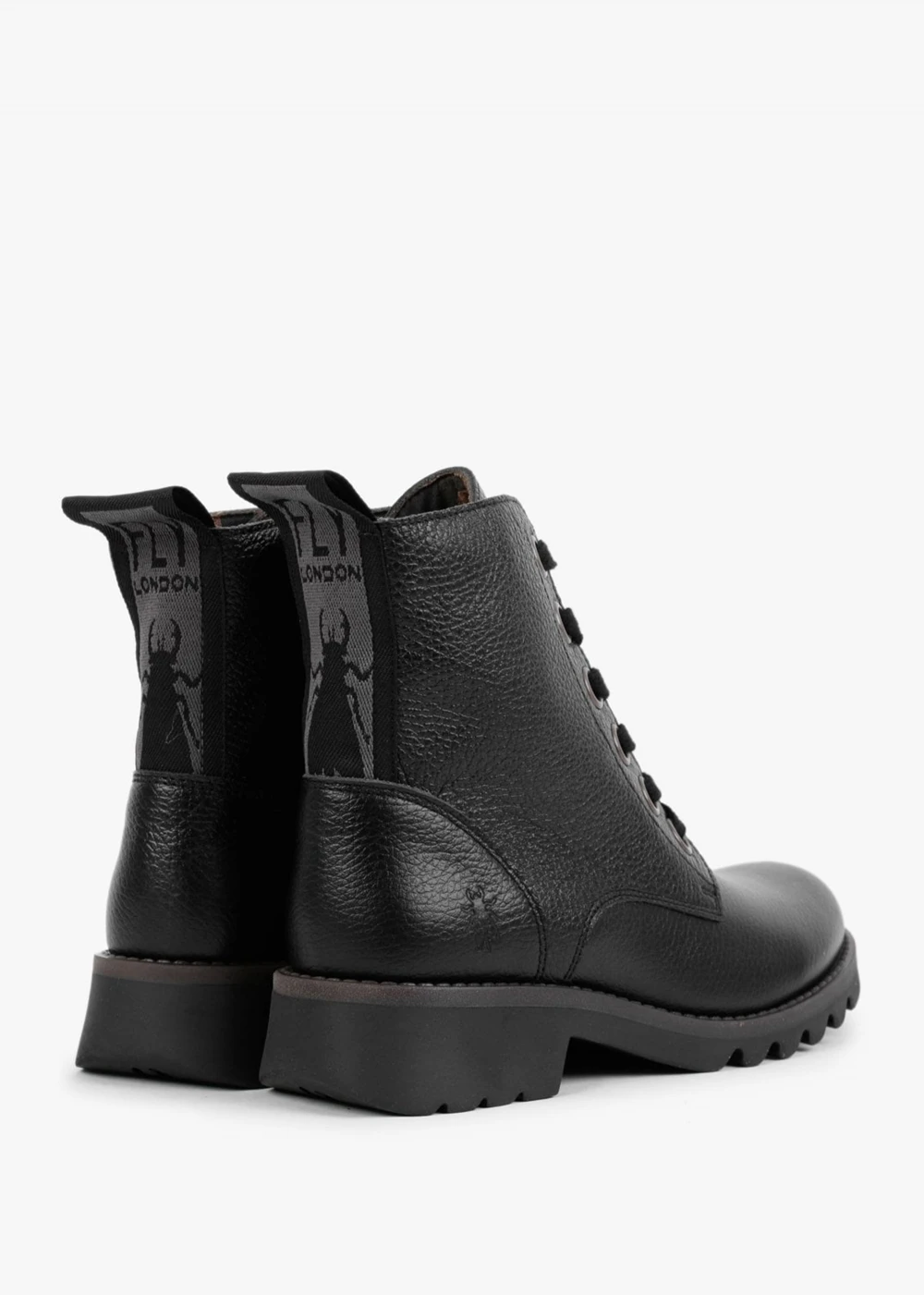 The ‘Ragi’ ankle boots are part of the New Season collection from Fly London. This everyday classic must have style is crafted from a premium pebbled leather upper with a patterned microfiber lining and a comfy rubber sole. The lace up upper ensures the perfect fit. Pull tab adds detail to the top-line as well subtle top-stitching and raised seaming to the upper. Classic embossed logo adds detail to the side of the boots. Signature Fly London branding is seen throughout.