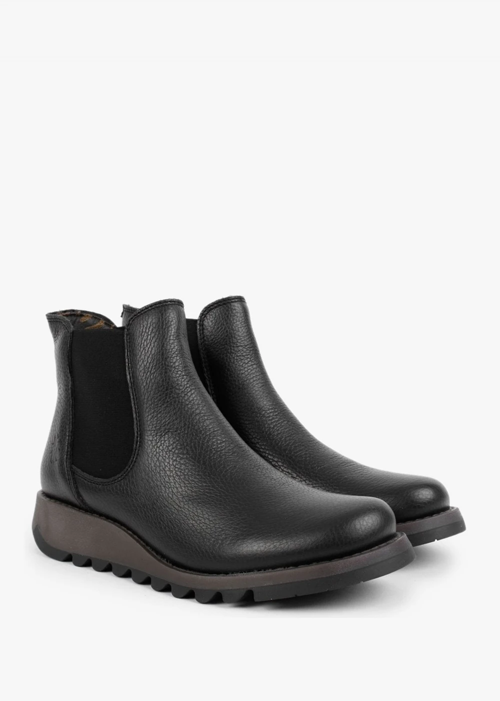 Be the first to review “Fly London Salv Black Pebbled Leather Wedge Chelsea Boots” Cancel reply