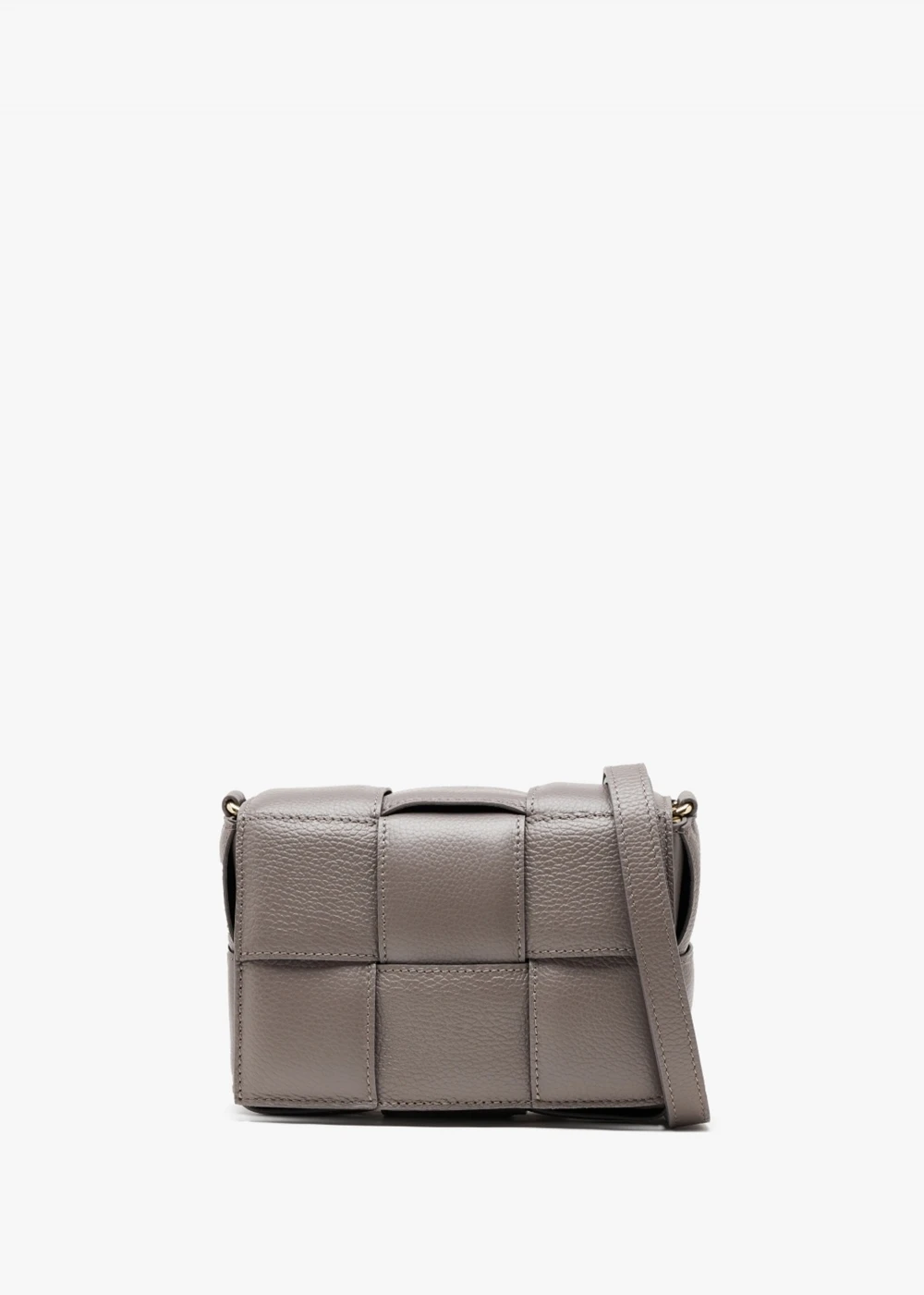 Add this New Season cross-body bag to your handbag collection. A day to night style crafted from premium pebbled leather in a woven padded pillow design with polished gold tone hardware. The secure push lock front flap reveals the main compartment featuring handy inner zip pocket. Carry by the detachable strap.
