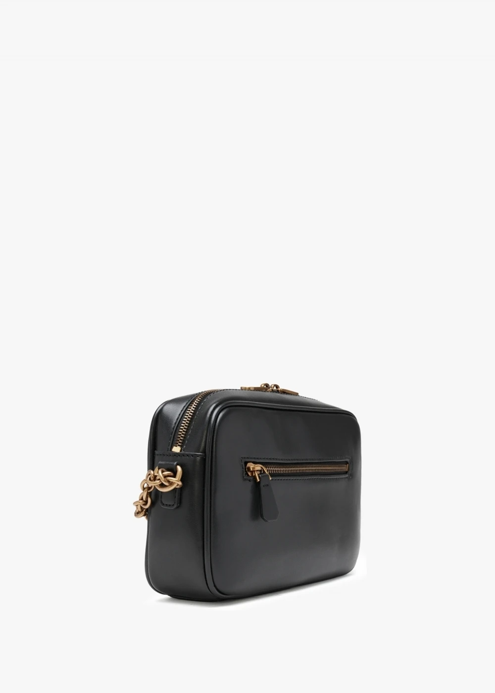The ‘Aviana’ camera bag from GUESS is the perfect day bag style. Crafted from premium PU with brushed gold tone hardware. The secure top zip fastening reveals inner zip and slot pockets as well as logo lining. Carry by the adjustable chain and PU strap on the shoulder or across the body. Classic ‘G’ logo adds detail to the front of the bag. Signature GUESS branding is seen throughout.