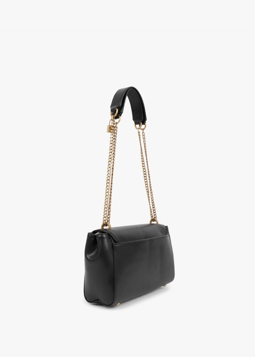 The ‘Katey Moc Croc’ shoulder bag from GUESS is the perfect day to night style. Crafted from premium PU with brushed gold tone hardware. The secure double magnetic snap front flap reveals logo lining and multiple handy compartments. Carry by the chain and PU strap on the shoulder or across the body. Signature GUESS branding is seen throughout.