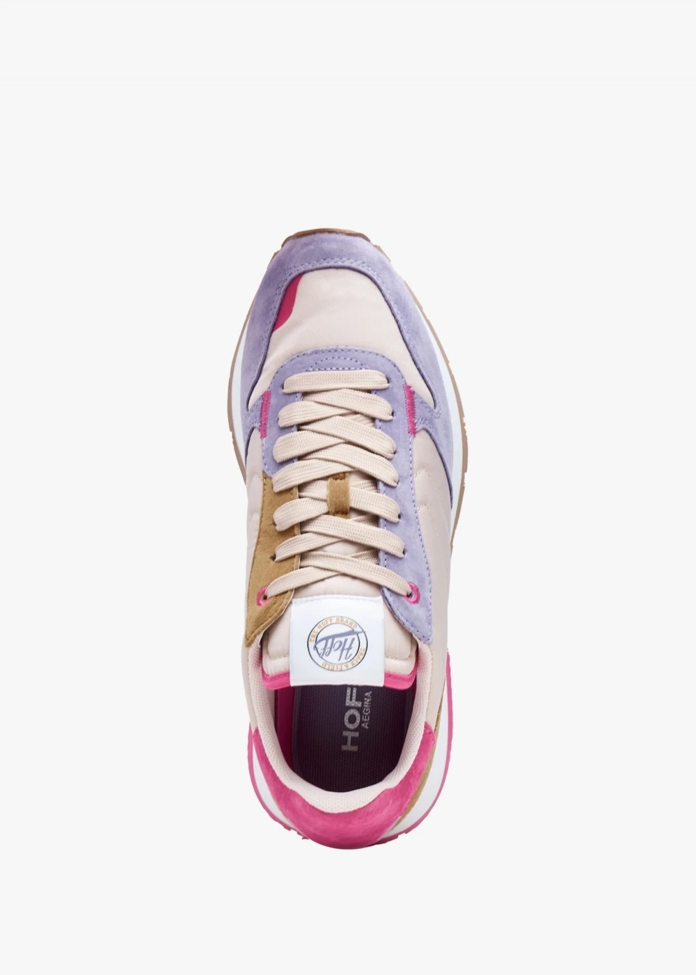 The ‘Aegina’ trainers are part of the New Season collection from HOFF. This sporty style is crafted from a premium suede and textile upper with textile lining a thermoformed insole and a comfy rubber sole. The lace up upper ensures the perfect fit. Colour block design features to the upper. Logo adds detail to the back of the ankle and tongue and sole. Signature HOFF branding is seen throughout.