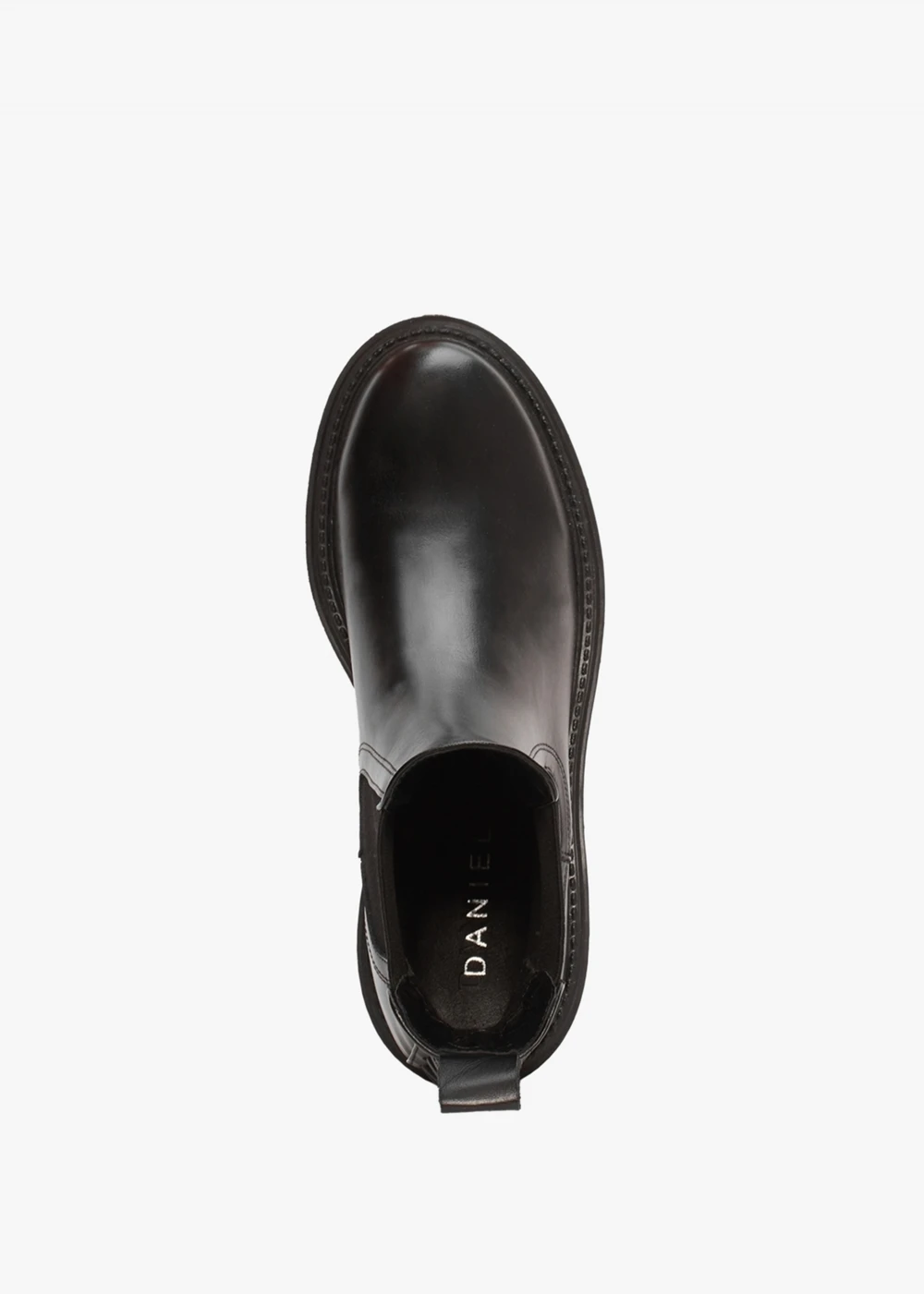 The Chelsea boot is a classic style and wardrobe staple. This New Season version from Daniel Footwear is the perfect example. Crafted from a premium leather upper with textile lining and a chunky rubber sole. An easy to wear pull on style featuring classic elasticated inserts. Pull tab adds detail to the top-line as well as chain embellishment to the back of the ankle. Subtle top stitching and raised seaming features. Signature Daniel branding is seen to the foot-bed.