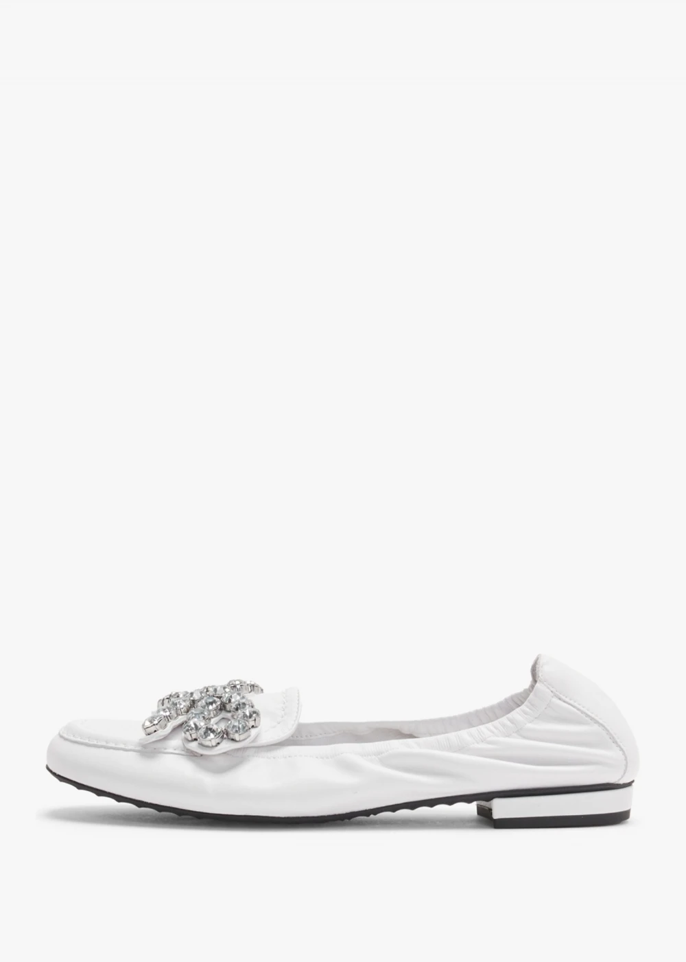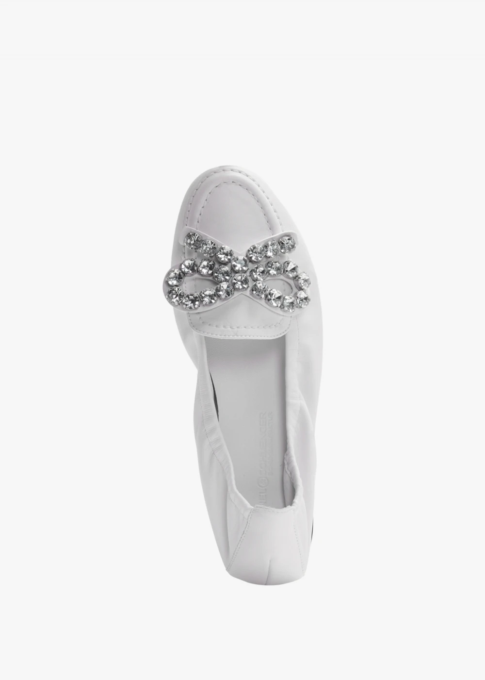 The ‘Malu Diamante Bow’ pumps are part of the New Season collection from Kennel & Schmenger. This everyday flat style is crafted from a premium leather upper with luxurious leather lining and comfy rubber sole. A easy to wear slip on style featuring elasticated top-line. Statement jewel embellished bow adds detail to the toe. Signature Kennel & Schmenger branding is seen to the foot-bed and sole.