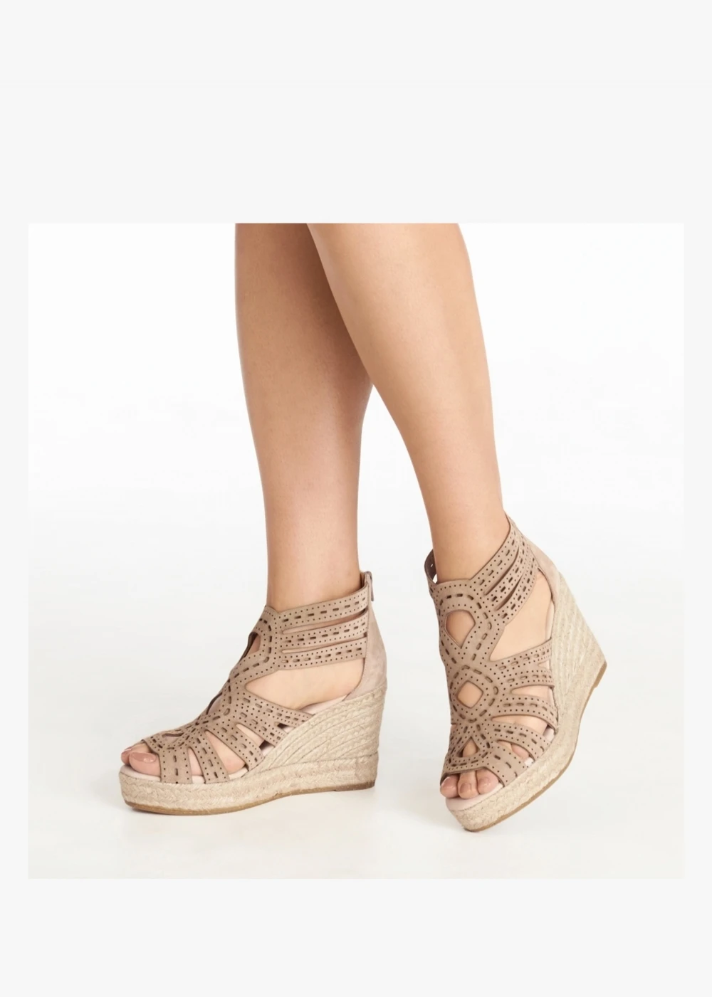 Be the first to review “Kimmy Beige Suede Laser Cut Wedge Espadrilles” Cancel reply