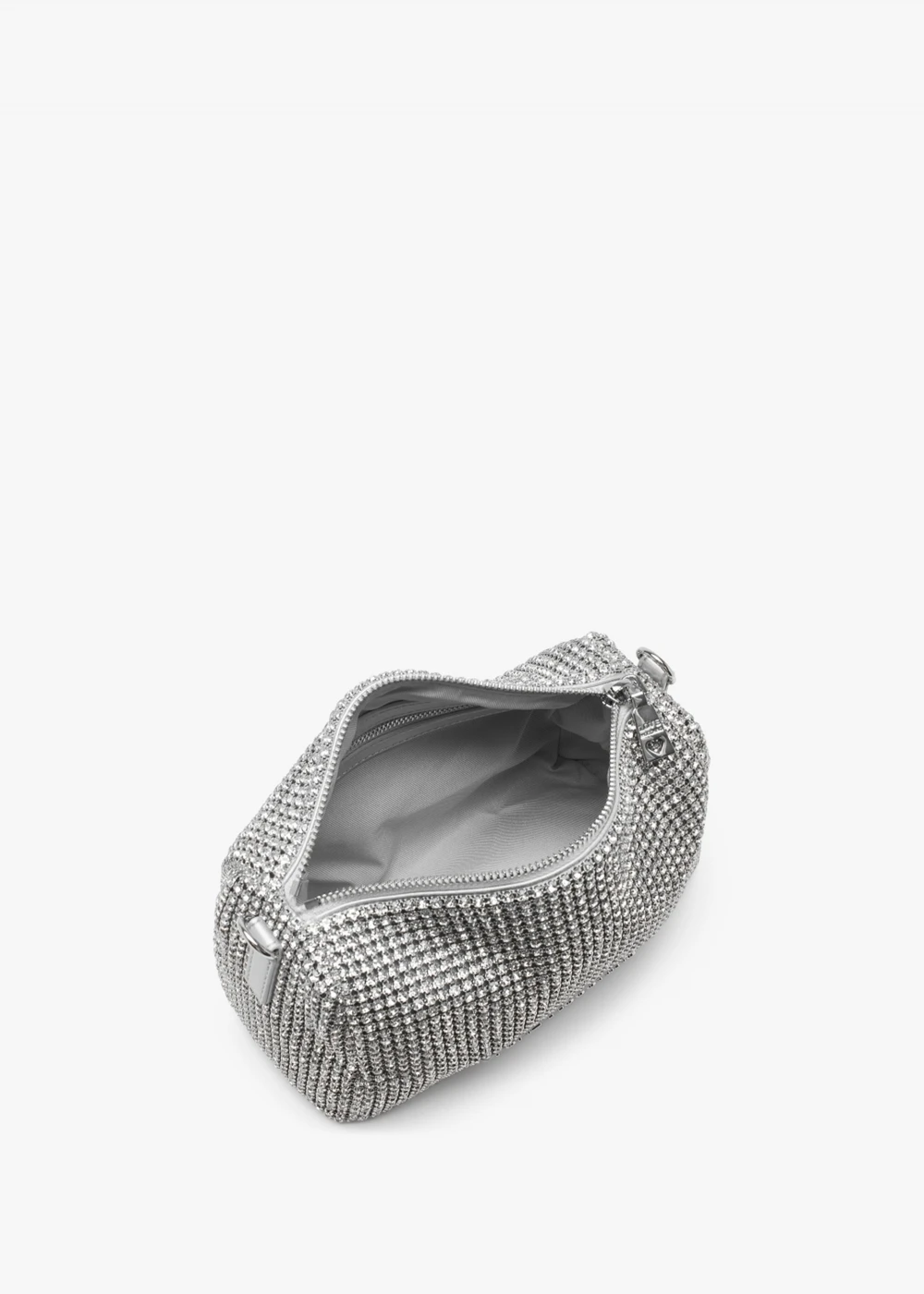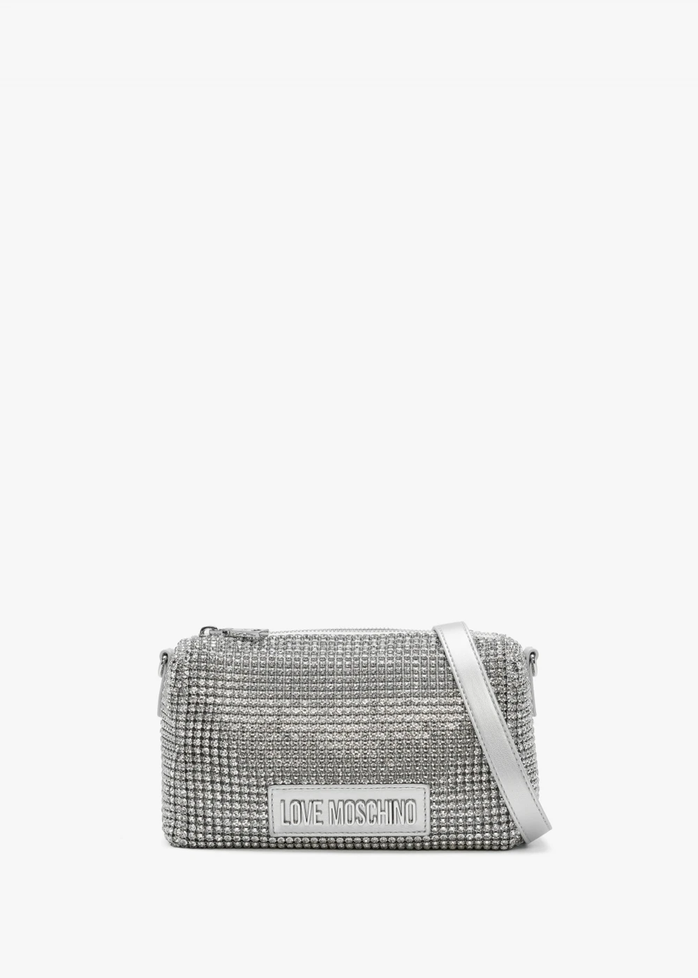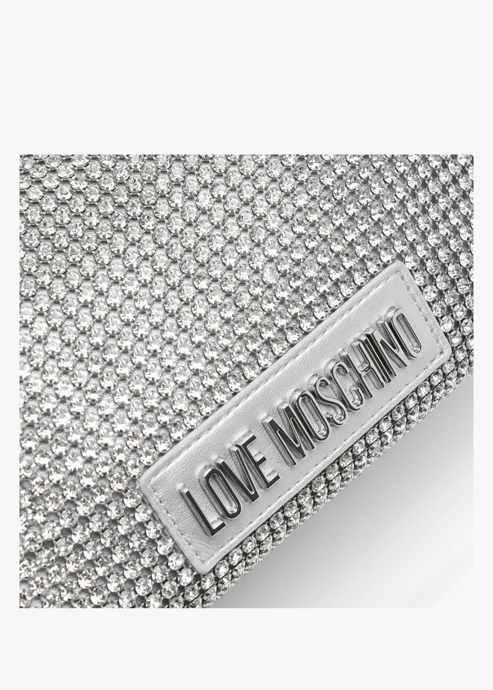 The ‘Bling Bling’ shoulder bag is part of the New Season collection from Love Moschino. This occasional evening accessory is crafted from a glitzy diamante chain mail style outer with polished silver tone hardware. The secure top zip fastening reveals the main compartment featuring handy inner zip and slot pockets. Carry by either of the detachable straps. Signature Love Moschino branding is seen throughout.