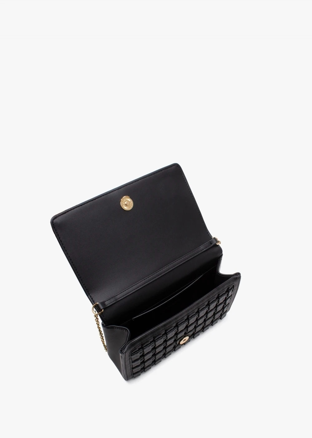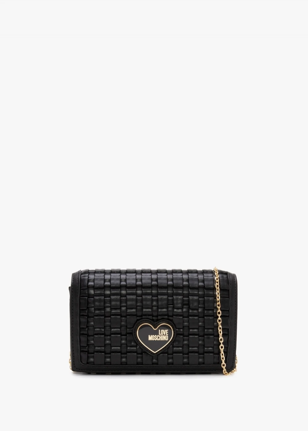 Add the ‘Square Quilt’ shoulder bag from Love Moschino to your handbag collection. This New Season day to night style is crafted from premium soft PU in a square quilted design with polished gold tone hardware. The secure magnetic snap front flap reveals the main compartment featuring handy inner slot pockets. Carry by the detachable chain strap or detach and fashion as a clutch. Logo heart motif adds detail. Signature Love Moschino branding is seen throughout.