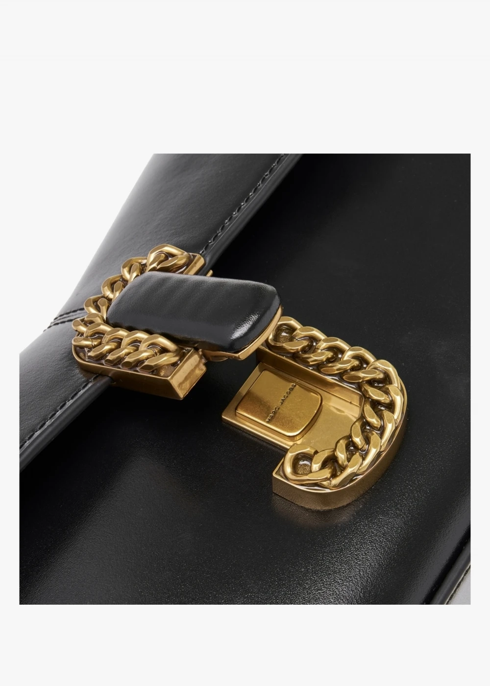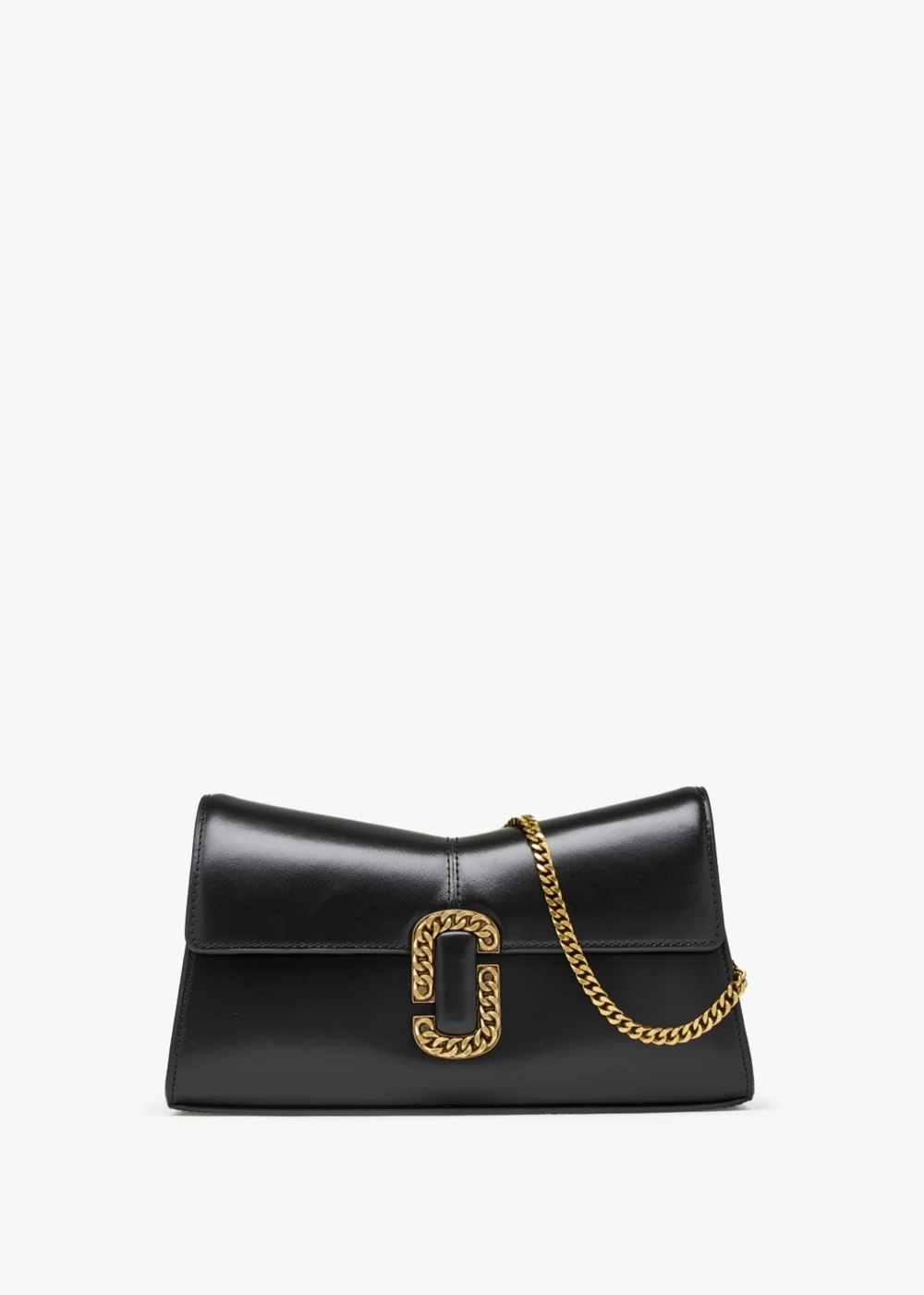‘The ST. Marc Convertible’ clutch bag from Marc Jacobs is inspired by the Fall 2016 runway collection. Crafted from premium smooth leather in a distinctive ‘M’ shaped silhouette with bronze tone hardware. The secure magnetic snap fastening reveals the main compartment and features a handy inner slot pocket. Use as a classic clutch style or attached the chain shoulder strap for a different carry option. Signature Marc Jacobs branding is seen throughout.