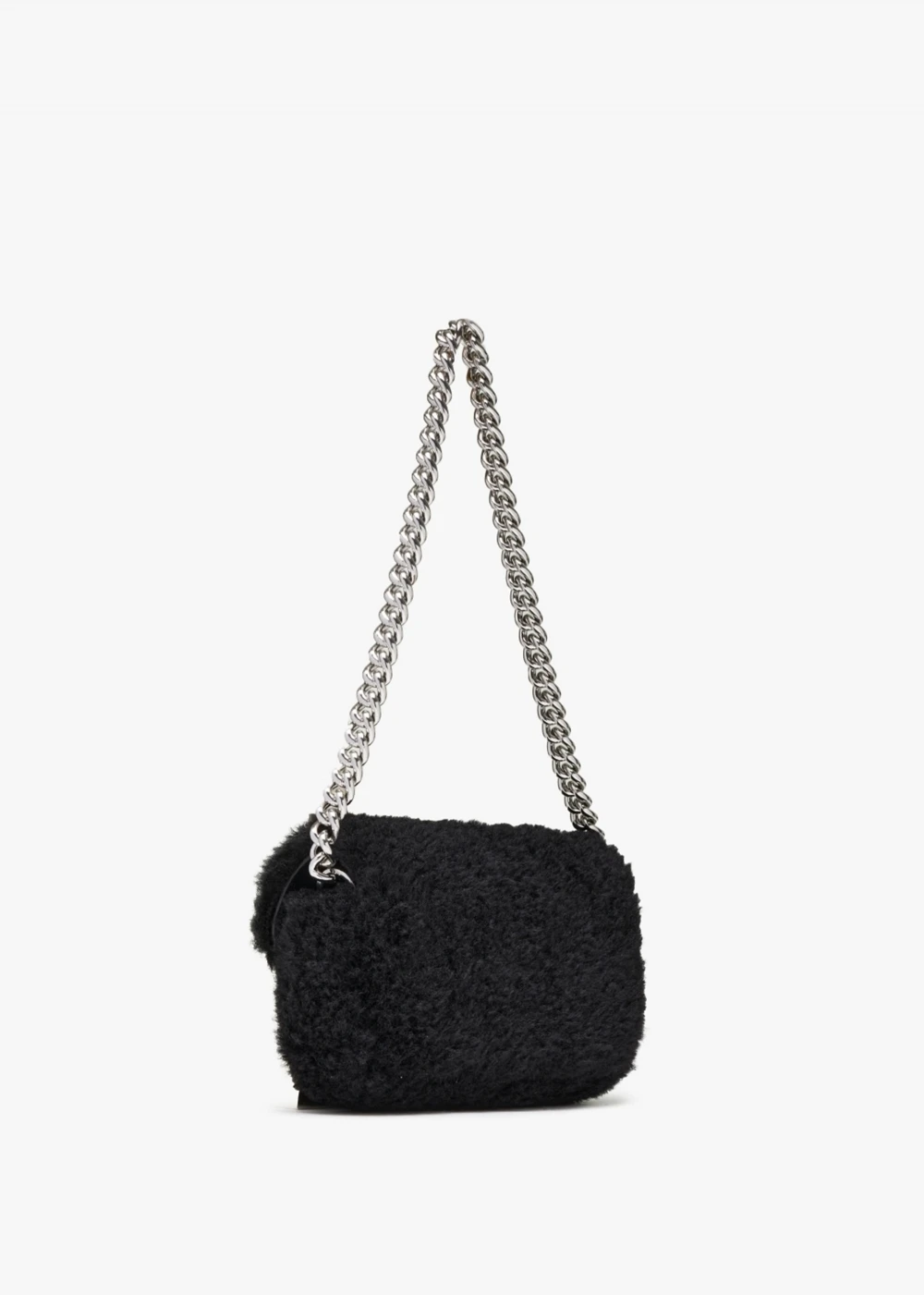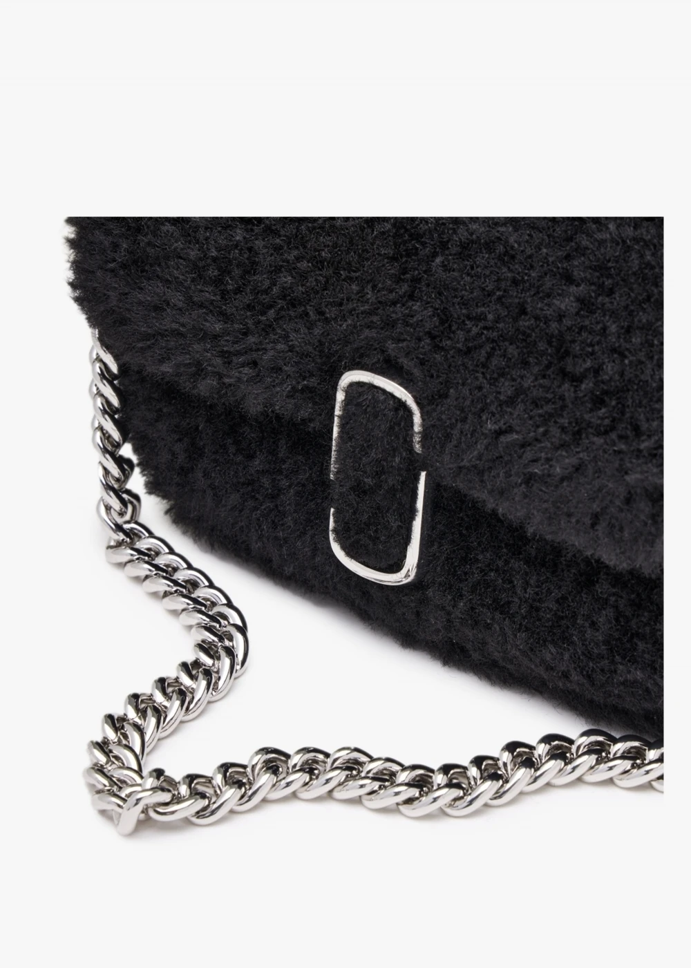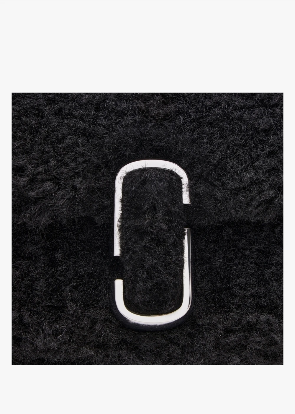 ‘The Teddy J Marc Mini’ is a new take and mini version of the Marc Jacobs signature ‘J Marc’ shoulder bag, featuring the same classic details as the original but redesigned in a teddy fleece style fabric with silver tone hardware for a plush feel. It fastens with a secure magnetic snap closure and includes interior zip and slot pockets. With three ways to wear, go from formal to casual by swapping the chain shoulder strap with the leather crossbody strap, or carry it strapless as a clutch for a true evening moment. Classic double ‘J’ logo adds detail. Signature Marc Jacobs branding is seen throughout.