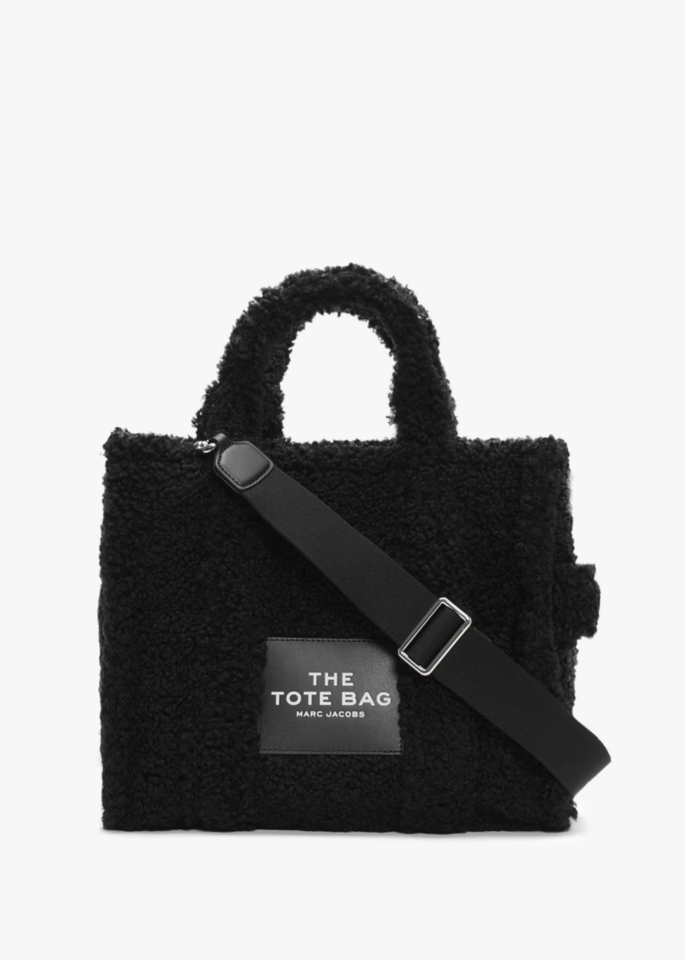 A new take on a classic Marc Jacobs tote- ‘The Teddy Medium tote bag is the perfect go-to carryall style. Crafted from premium cosy polyester teddy fabric with polished silver tone accents. The secure top zip fastening reveals the spacious main compartment featuring handy inner zip pocket. Carry by the top handles or the detachable guitar style strap. Signature Marc Jacobs branding is seen throughout.