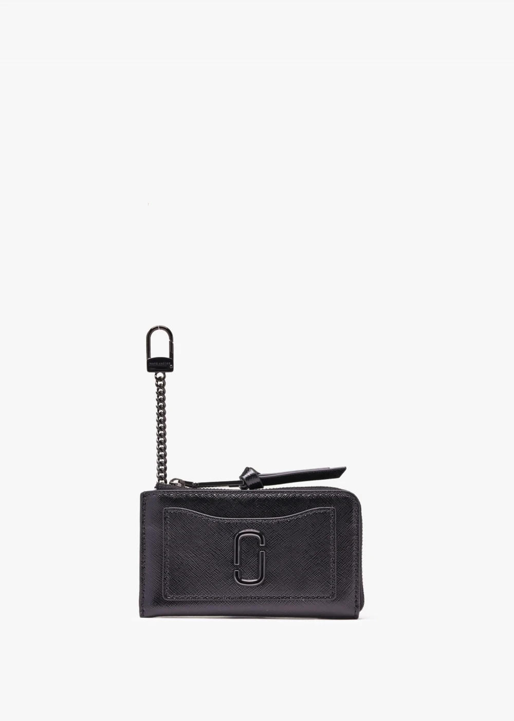 Keep all your coins notes and cards in check this New Season with ‘The Utility Snapshot DTM’ wallet from Marc Jacobs. This everyday accessory is crafted from premium textured saffiano leather with DTM hardware. Secure top zip fastening compartment features with attached keyring chain as well as multiple card slots. Classic double ‘J’ logo adds detail. Signature Marc Jacobs branding is seen throughout.