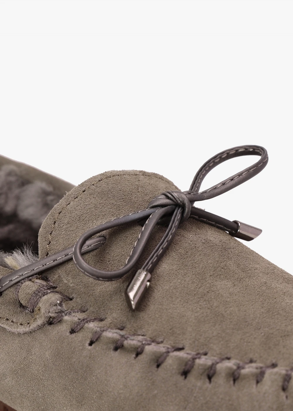 Be the first to review “Moccy Grey Suede Moccasin Slippers” Cancel reply