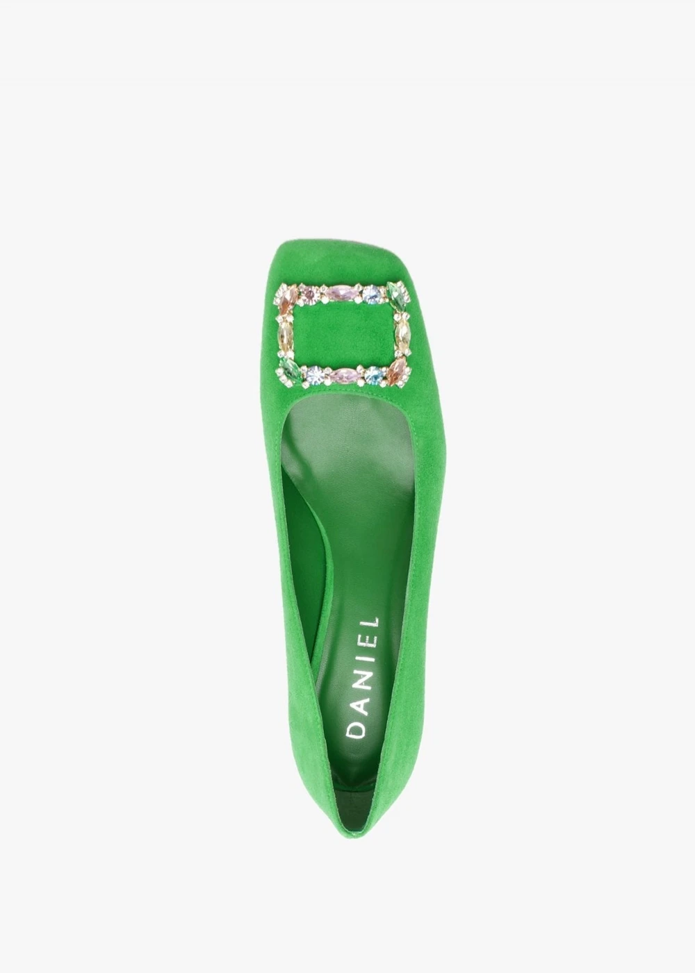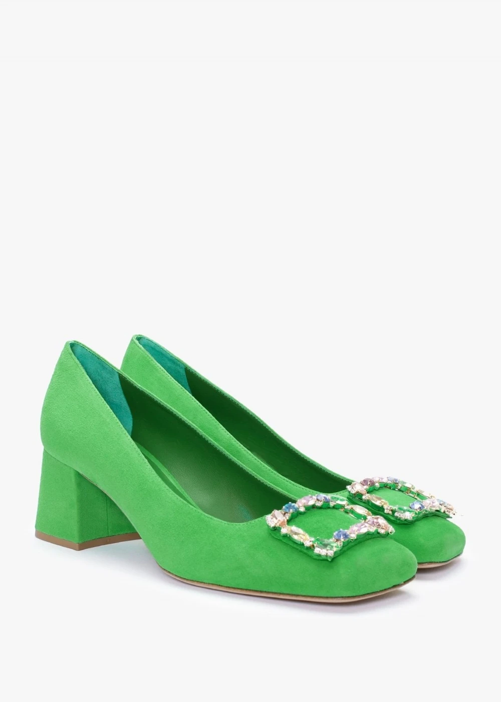 Be the first to review “Nadia Green Suede Jewelled Block Heel Court Shoes” Cancel reply