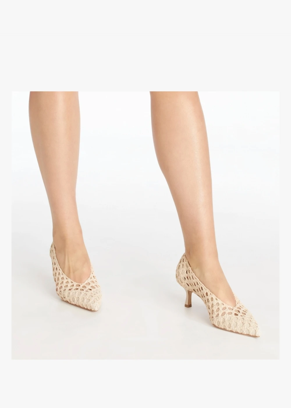 The perfect day to dark style-āNokitā is part of the New Season collection from Daniel Footwear. Crafted from premium leather in a chic woven design with part leather lining and luxurious leather sole. An easy to wear slip on style featuring classic pointed toe and manageable kitten heel. Signature Daniel branding is seen to the foot-bed.