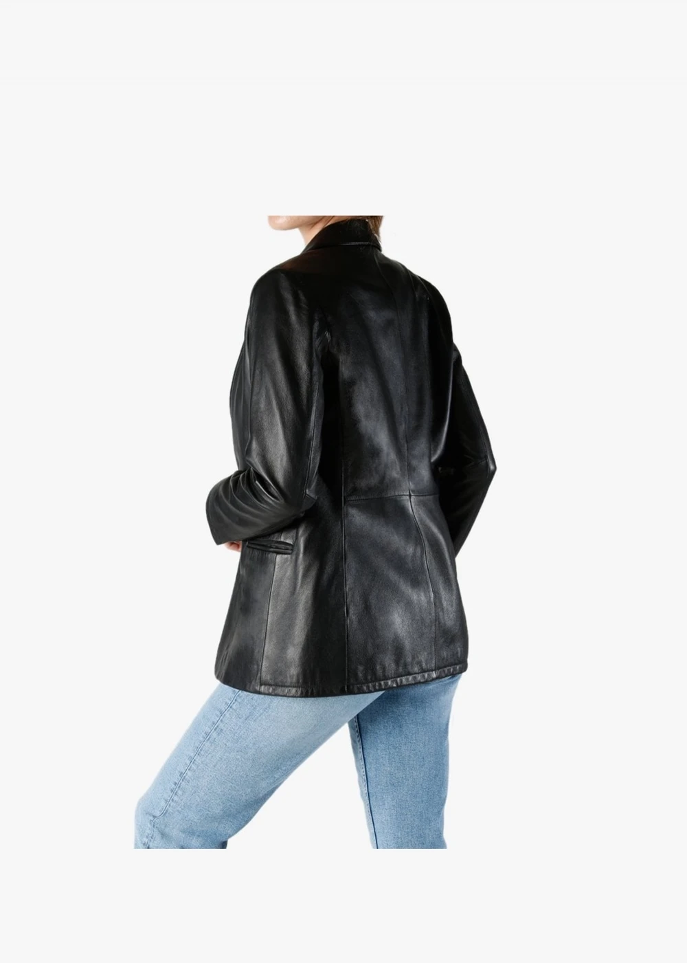 Add the ‘Meg’ blazer from Oakwood to your New Season wardrobe. This simple yet chic style can be both dressed up or down. Crafted from premium buttery soft leather with textile lining. Single breasted button fastening creates an easy wear. Handy welt pockets add detail, inner zip fastening pockets also feature. Signature Oakwood branding is seen to the single button and lining.