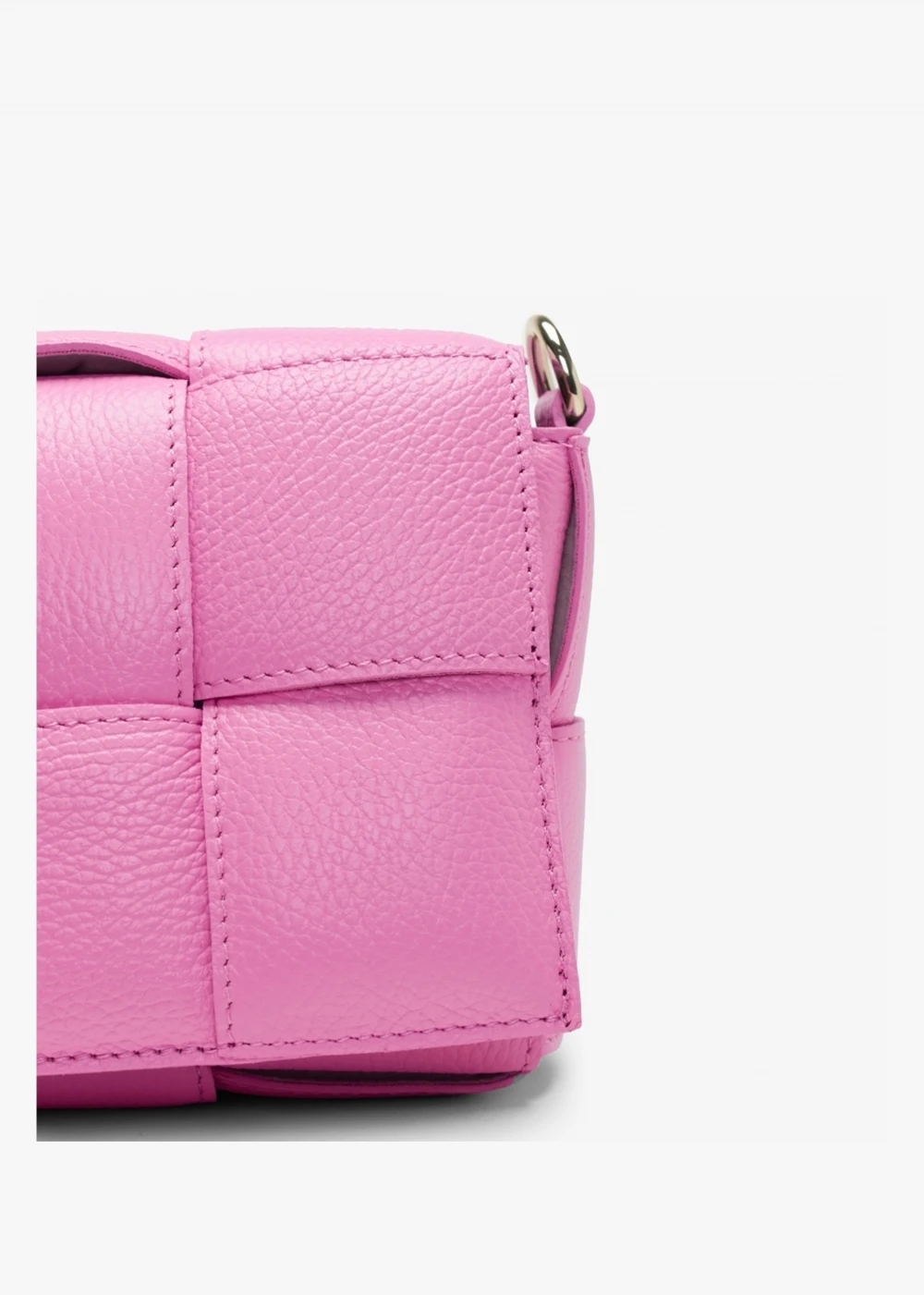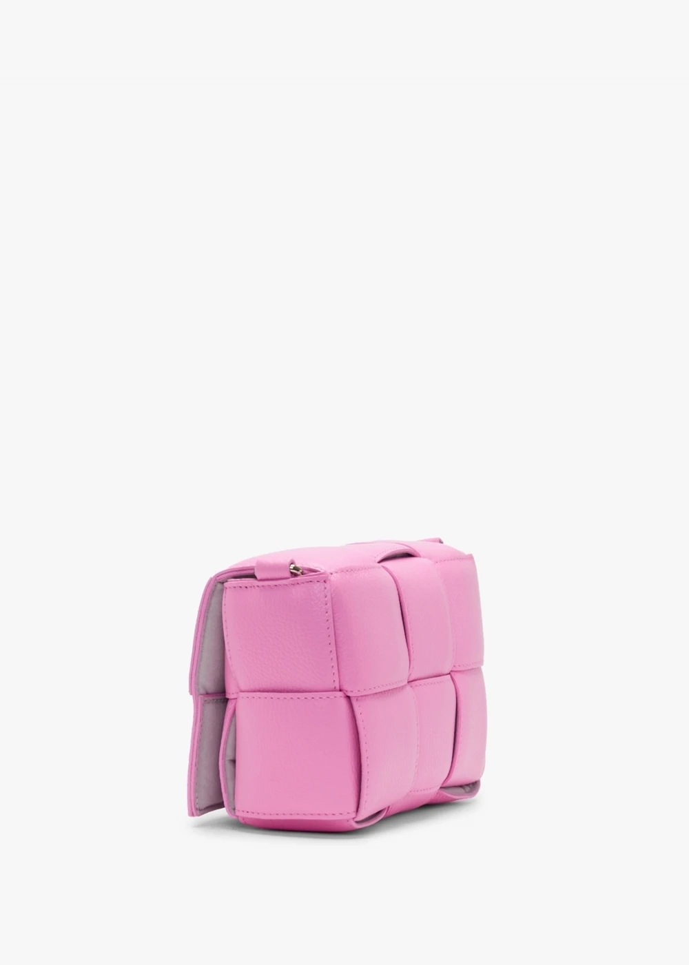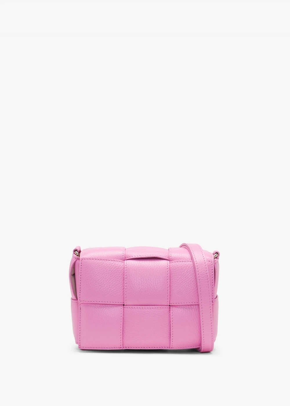 Add this New Season cross-body bag to your handbag collection. A day to night style crafted from premium pebbled leather in a woven padded pillow design with polished gold tone hardware. The secure push lock front flap reveals the main compartment featuring handy inner zip pocket. Carry by the detachable strap.