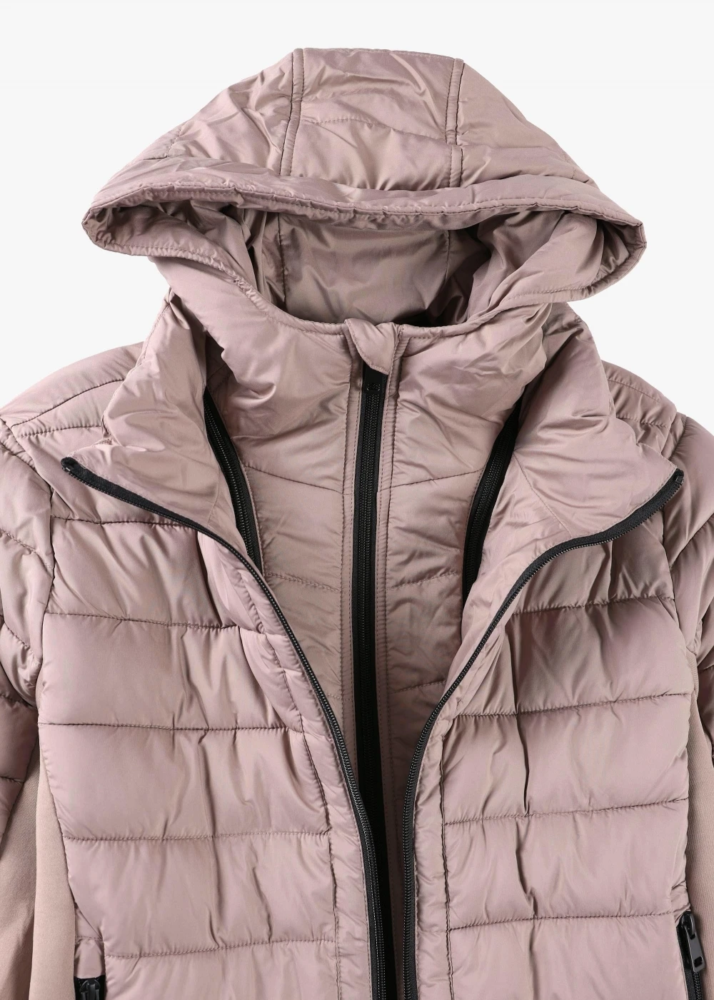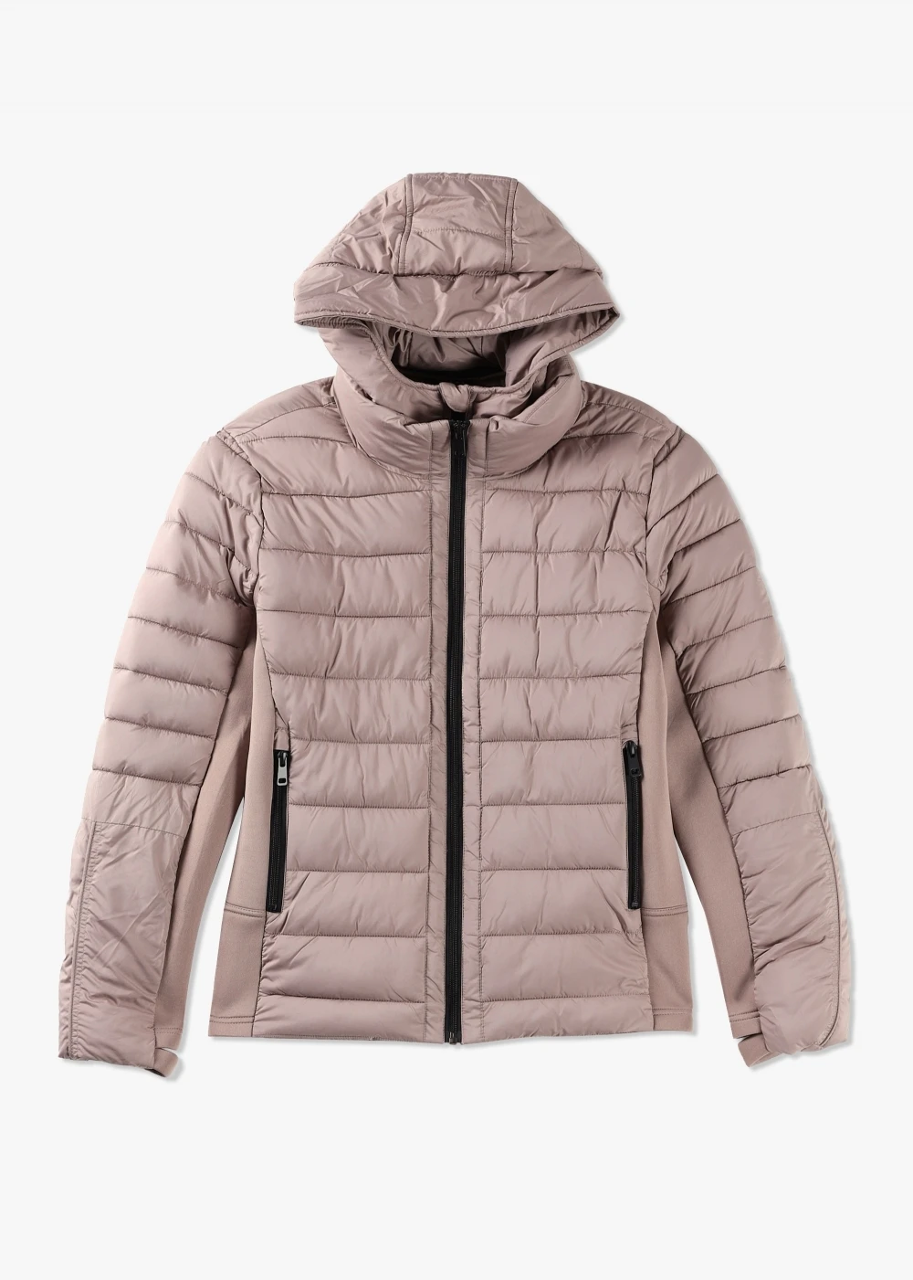 This New Season jacket from Tribal is the perfect addition to your Winter wardrobe. This cosy style is crafted from premium polyester with contrasting stretch inserts. A classic padded quilted design featuring double centre front zip fastening, zip pockets, detachable hood and thumb loops. Signature Tribal branding is seen to the lining.