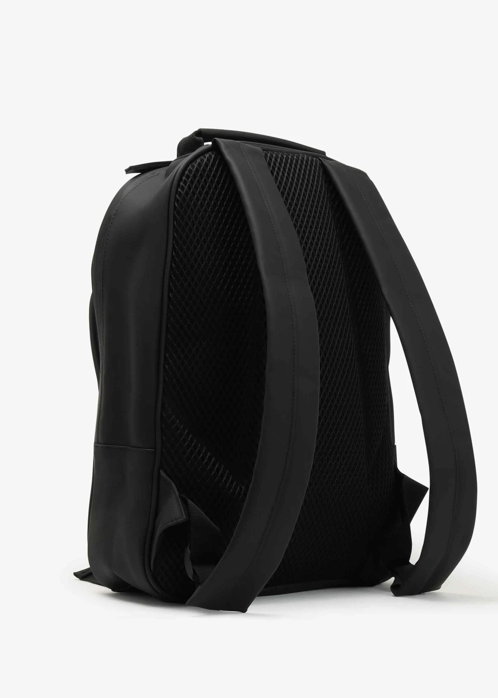 Add the unisex ‘Book’ backpack from RAINS to your bag collection. This everyday versatile style is crafted from RAINS’ signature waterproof PU fabric, engineered for carrying strength and durability with a smooth finish. The padded air mesh back panel creates added comfort. Matt black tone hardware adds detail. The secure zip fastening reveals the spacious main compartment, handy zip front pocket and inner pocket for a laptop also features. Carry by the adjustable back straps or the webbed top handle. RAINS branding adds detail throughout.