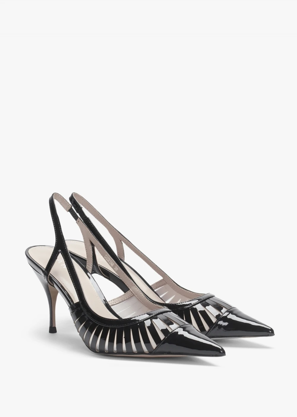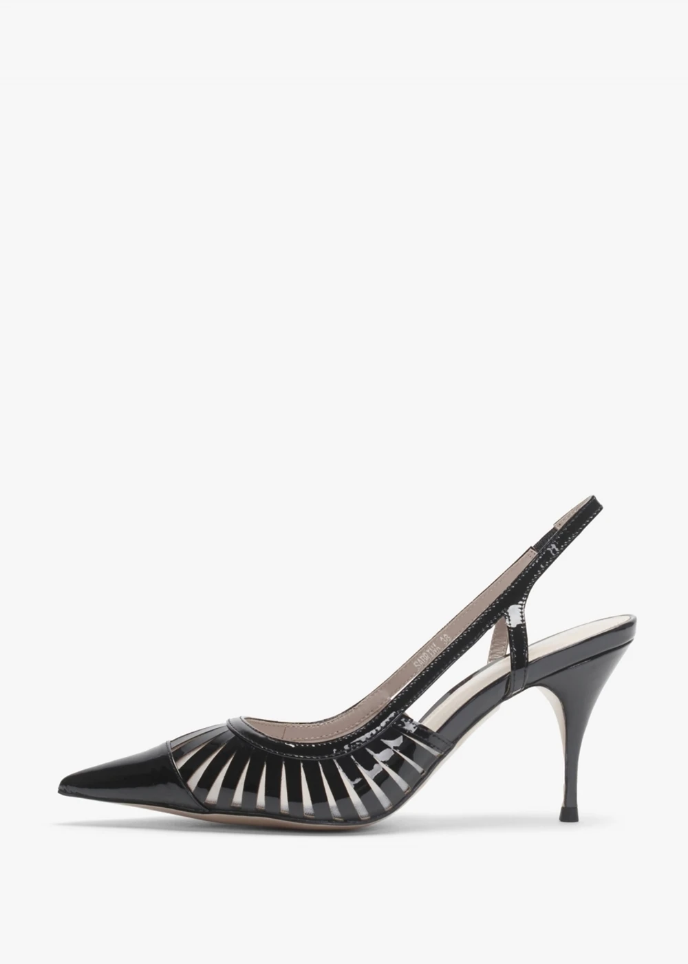 Be the first to review “Sabrina Black Patent Leather Sling Back Heeled Shoes” Cancel reply