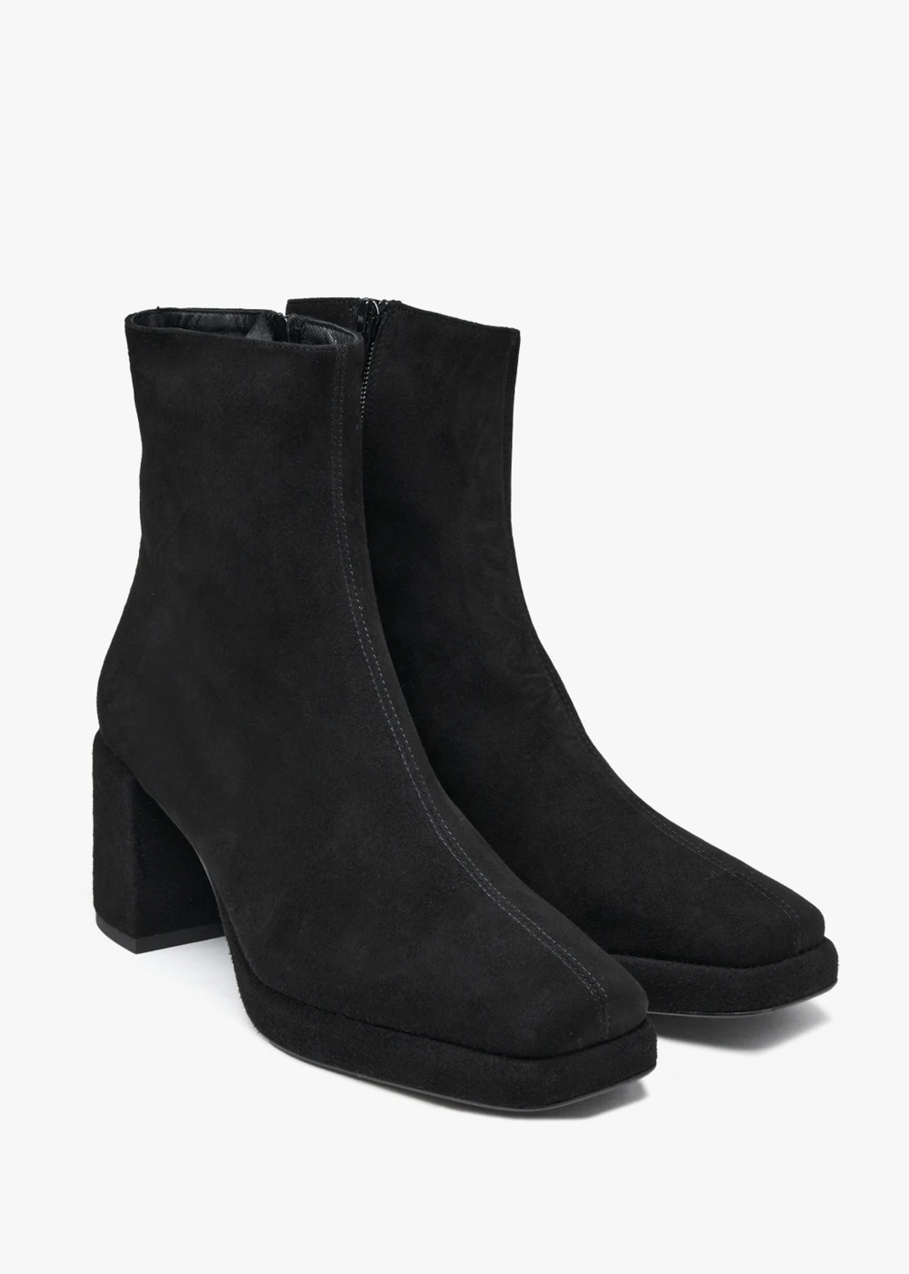 Be the first to review “Salima Black Suede Block Heel Ankle Boots” Cancel reply