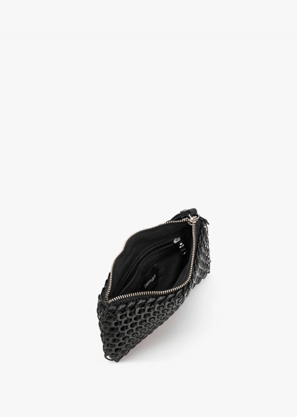 The small ‘Luciana’ clutch bag is part of the New Season collection from Bottletop. This evening style is crafted from upcycled aluminium bottle top tabs in a hand crochet design with sustainable leather trim. The secure top zip fastening features handy inner zip pocket. Signature Bottletop branding is seen to the inside of the bag.