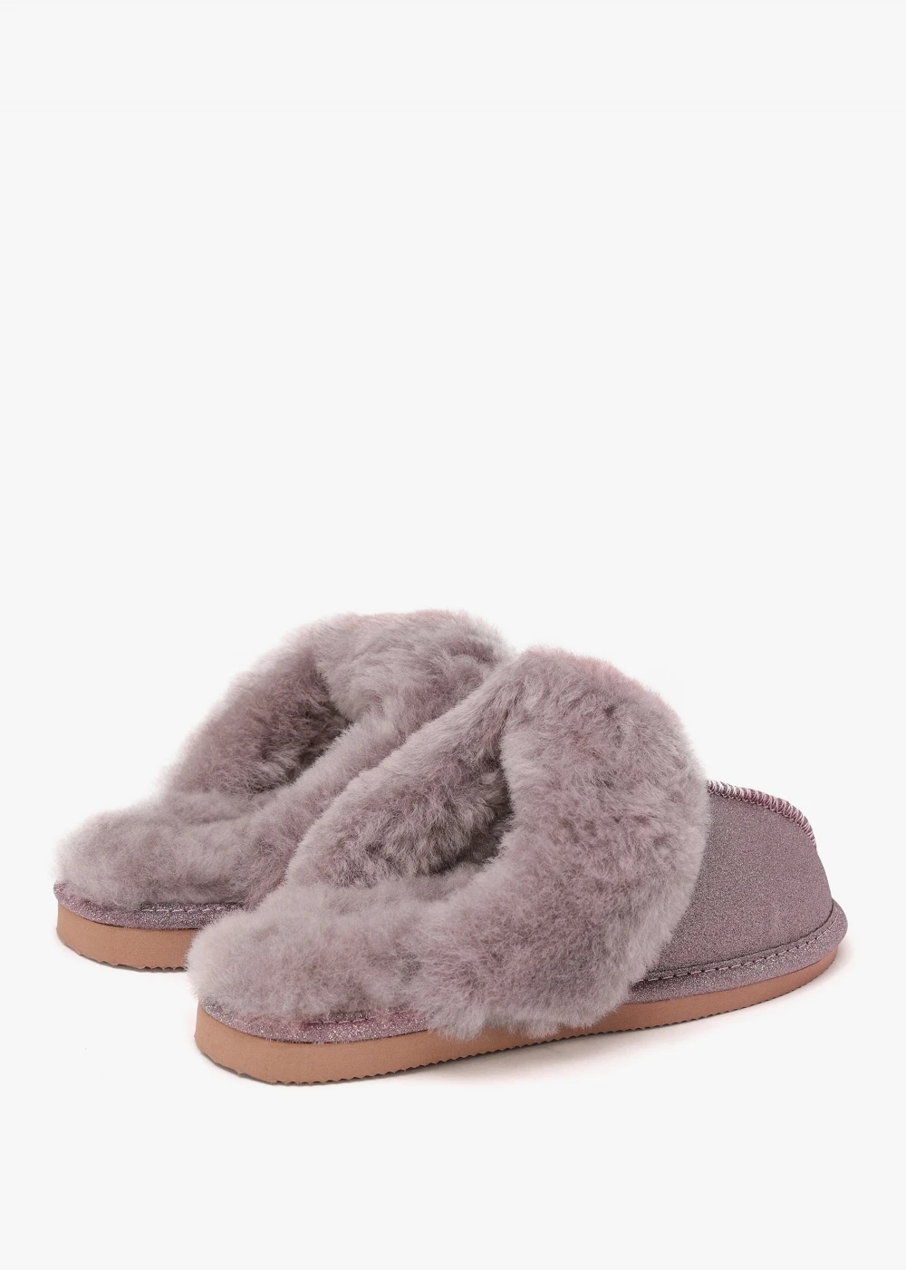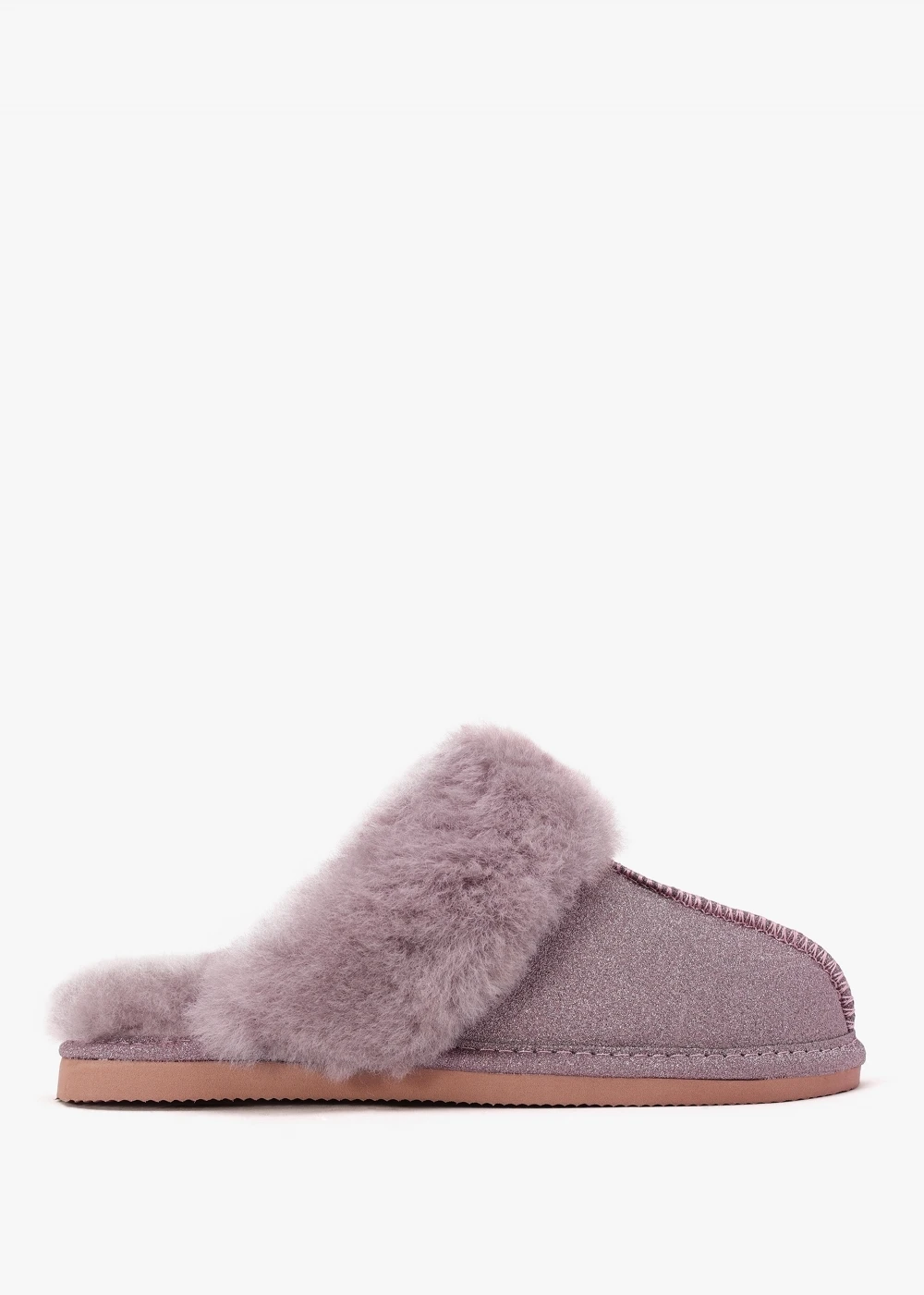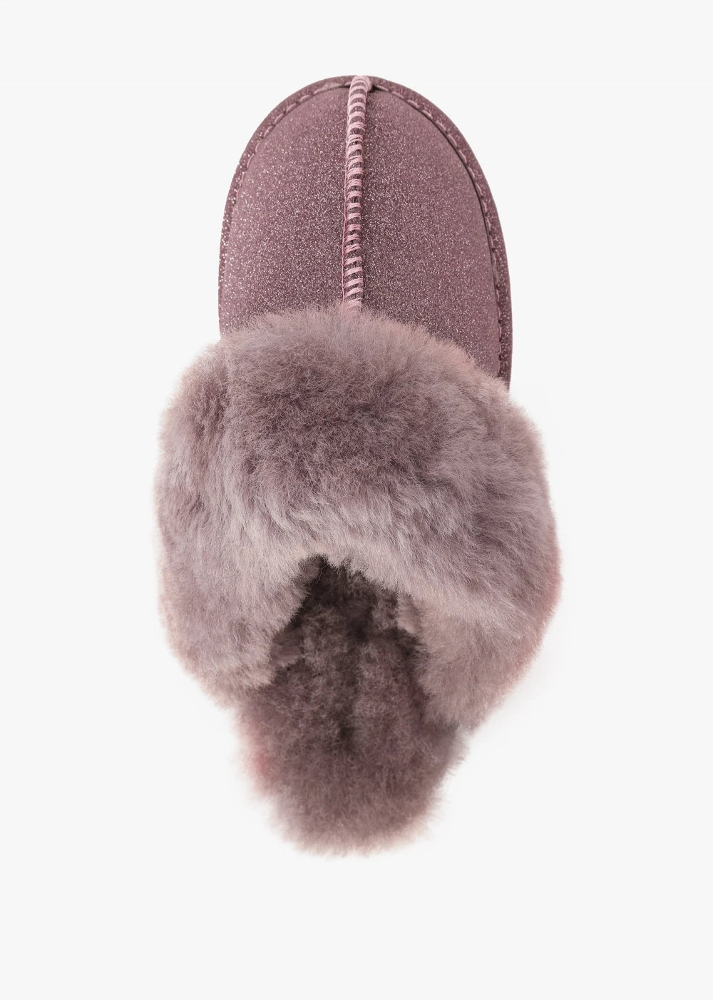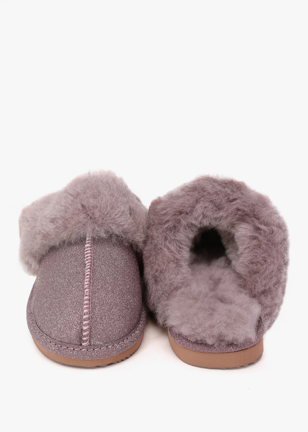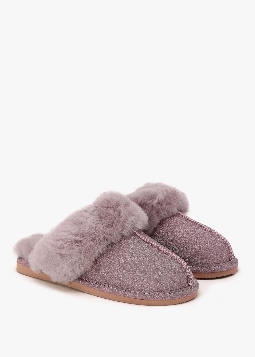 The women’s ‘Soglit’ slippers from Daniel Footwear are a classic style and wardrobe staple. These quintessential house slippers are crafted from a premium glitzy glitter upper with sheepskin lining and an EVA sole. An easy to wear slip on style featuring closed toe. Signature Daniel branding is seen to the foot-bed.