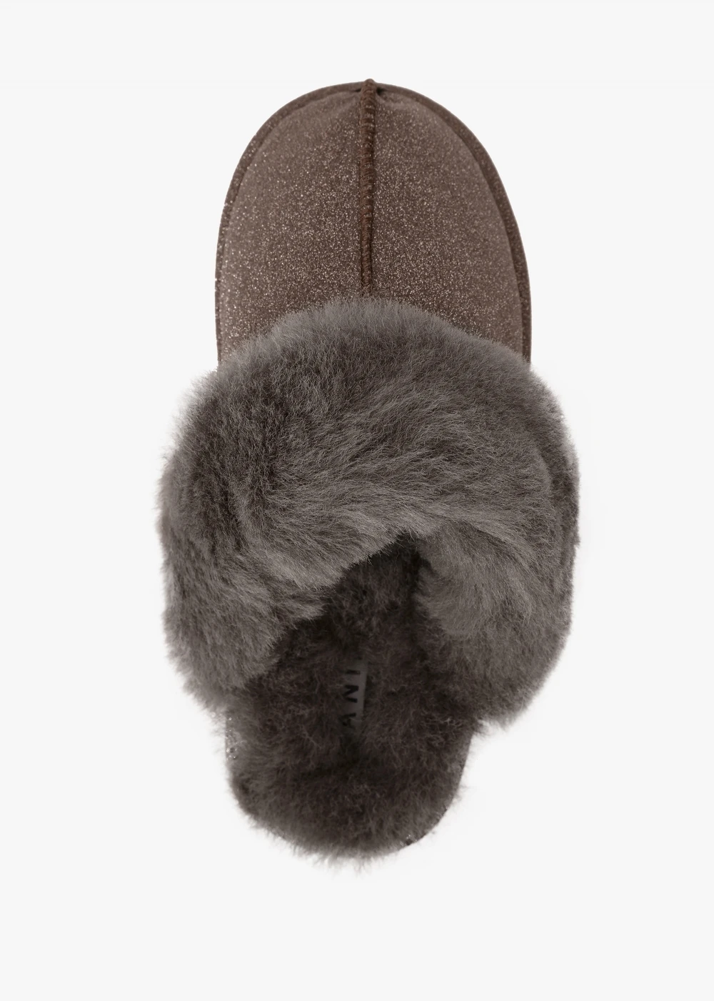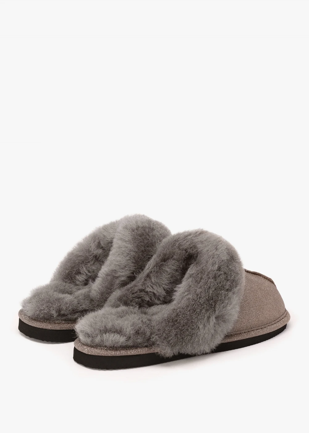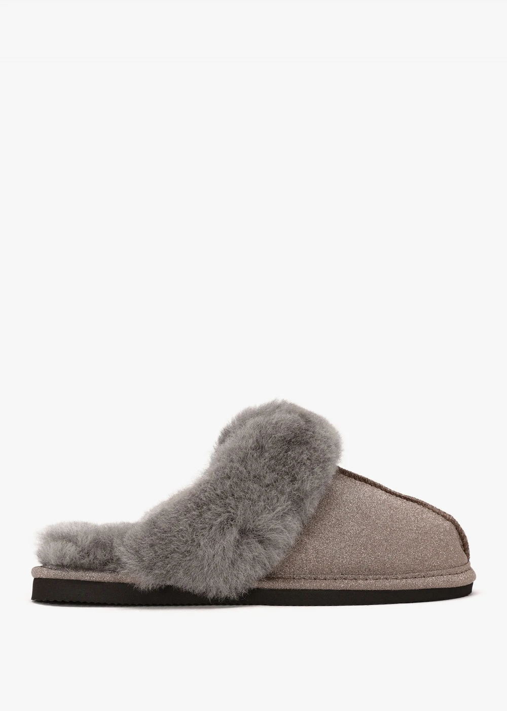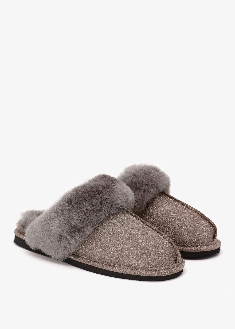 The women’s ‘Soglit’ slippers from Daniel Footwear are a classic style and wardrobe staple. These quintessential house slippers are crafted from a premium glitzy glitter upper with sheepskin lining and an EVA sole. An easy to wear slip on style featuring closed toe. Signature Daniel branding is seen to the foot-bed.