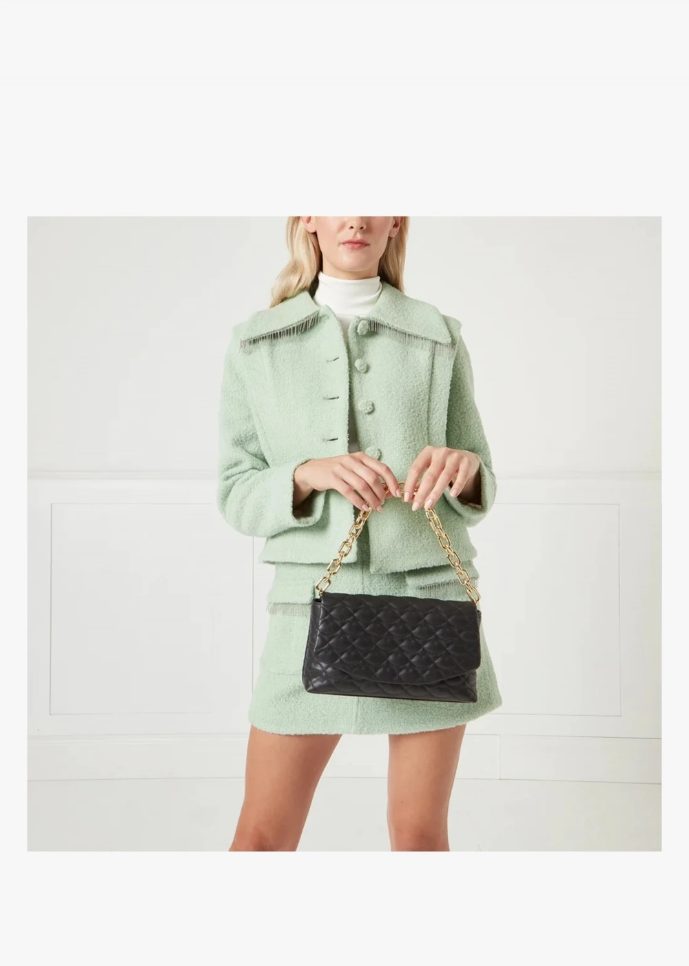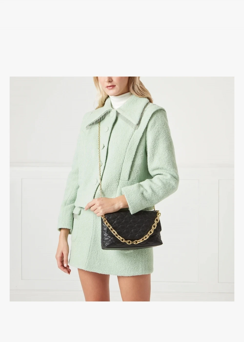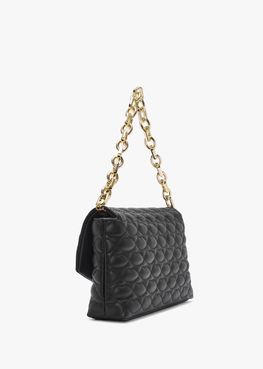 The ‘Tara’ clutch is part of the New Season collection from Lulu Guinness. This classic style is crafted from premium leather in a quilted lips design with polished gold tone hardware. The secure magnetic snap front flap fastening reveals cotton lining and features handy inner zip pocket. Use as a clutch or carry by either the chunky chain shoulder strap or the detachable lips chain strap. Signature Lulu Guinness branding is seen throughout.